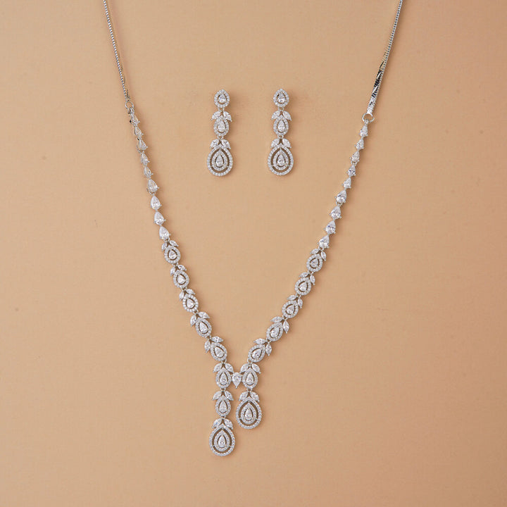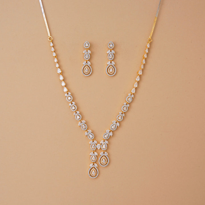 437355 Cubic Zirconia Classic Necklace Set With 2 Tone Rhodium Plating