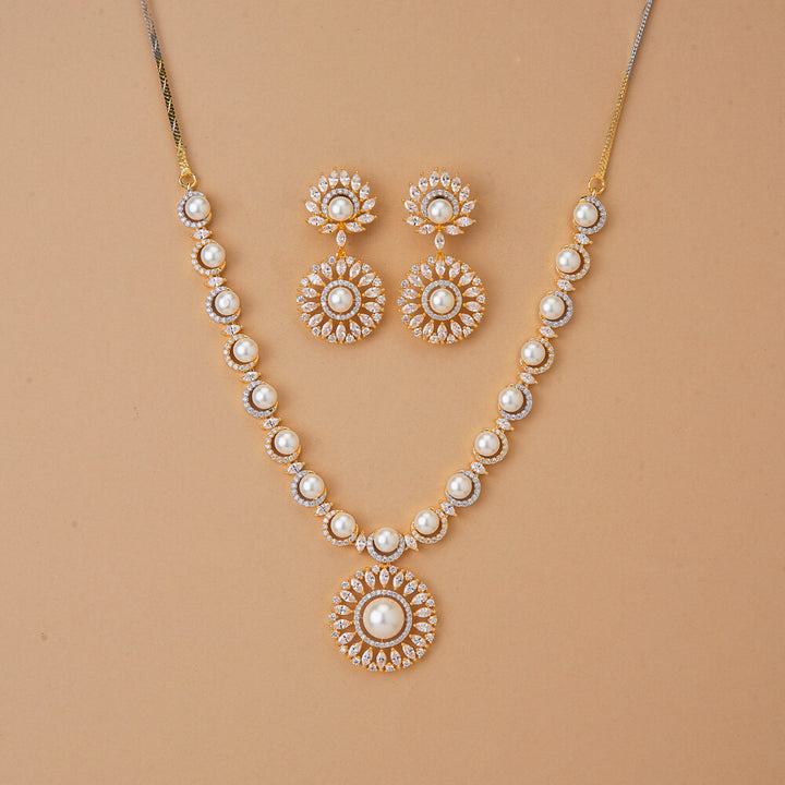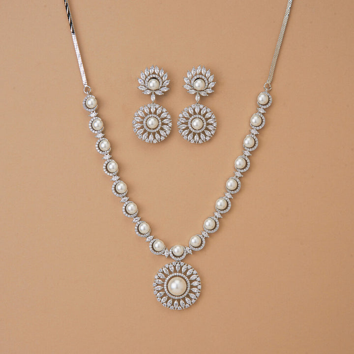 437376 Cubic Zirconia Classic Necklace Set With 2 Tone Rhodium Plating