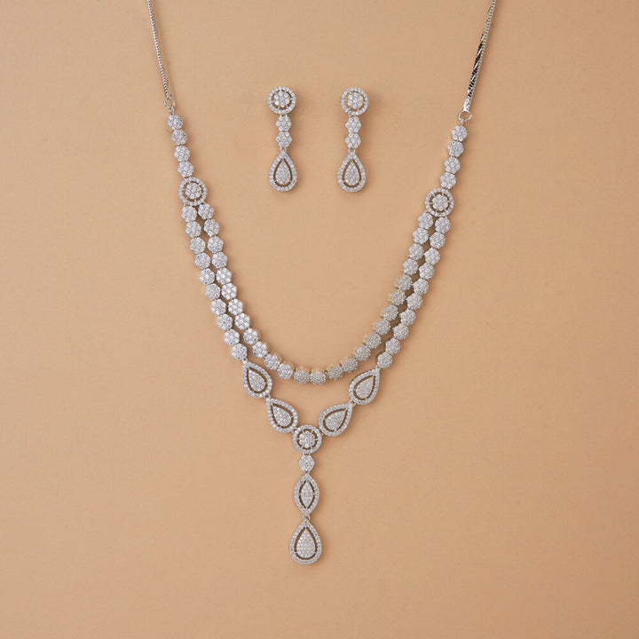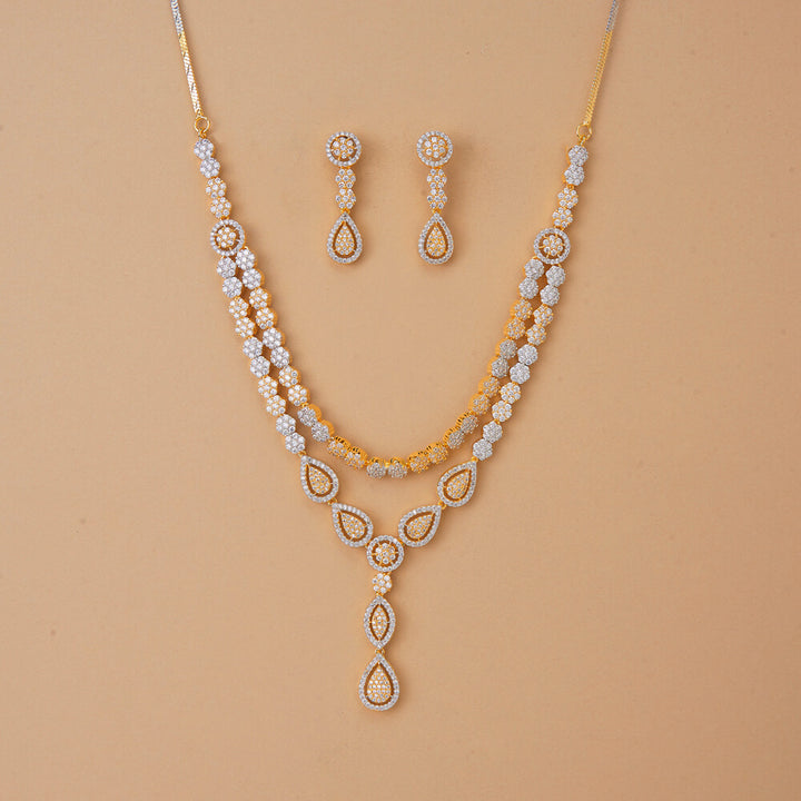 437378 Cubic Zirconia Classic Necklace Set With 2 Tone Rhodium Plating