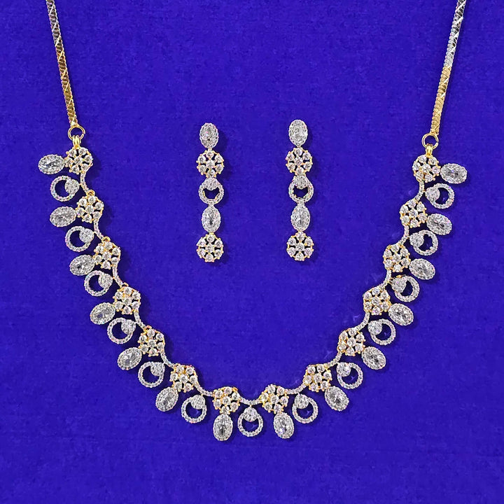 441166 Cubic Zirconia Classic Necklace Set With 2 Tone Rhodium Plating