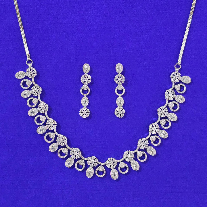 Weight: 40.0 Grams, Earring Height = 40 mm || Width = 8 mm,Regular Size And Adjustable,Bollywood Look,2 Tone Plating,Rhodium Plating,American Diamond Necklace Set