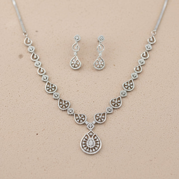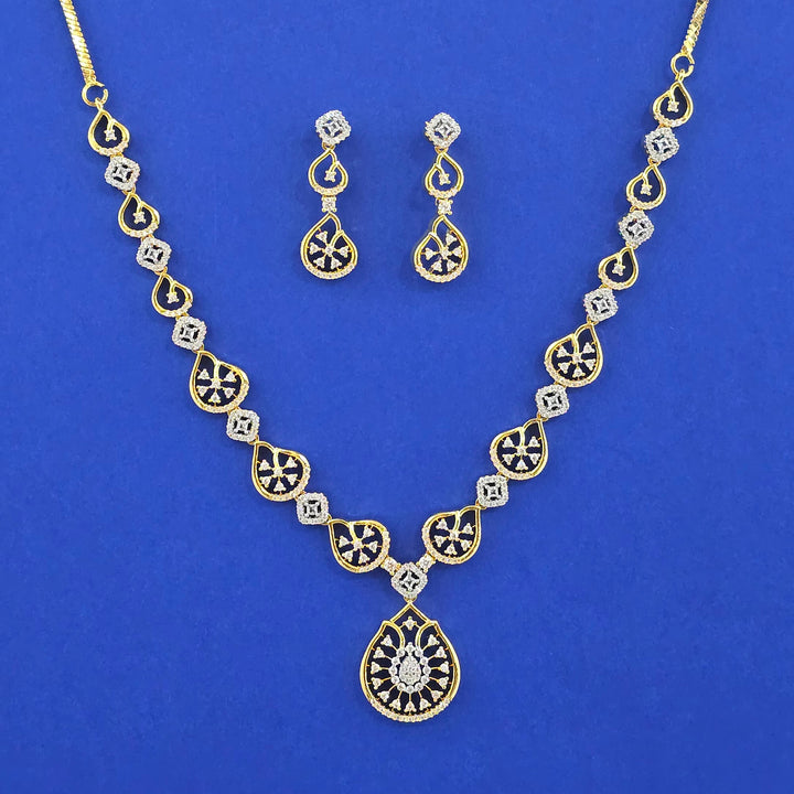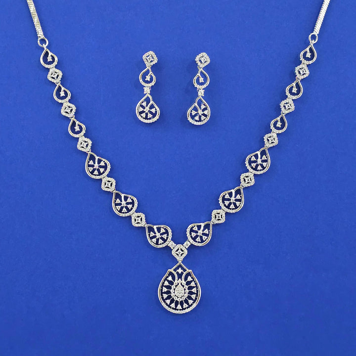 Weight: 3.0 Grams, Earring Height = 33 mm || Width = 10 mm,Regular Size And Adjustable,Latest Design,2 Tone Plating,Rhodium Plating,American Diamond Necklace Set,American Diamond Necklace Set