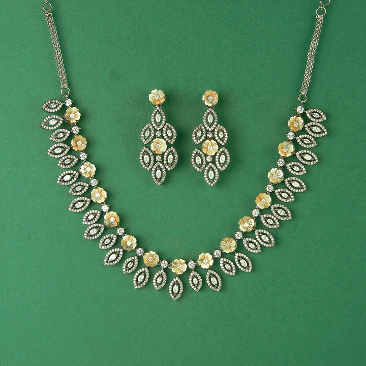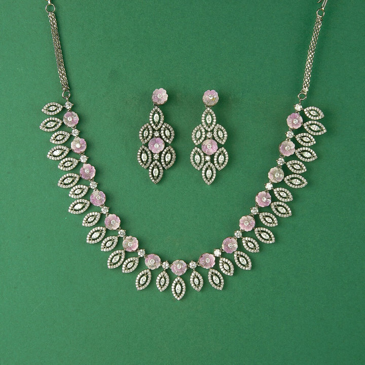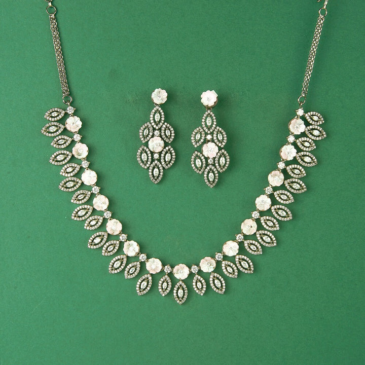 434490 Cubic Zirconia Classic Necklace Set With Black Plating