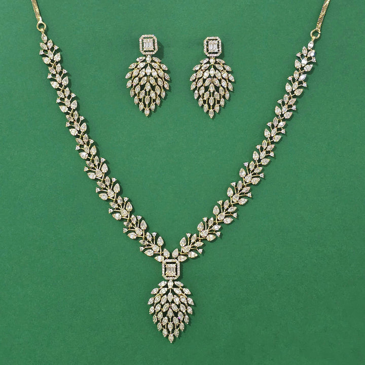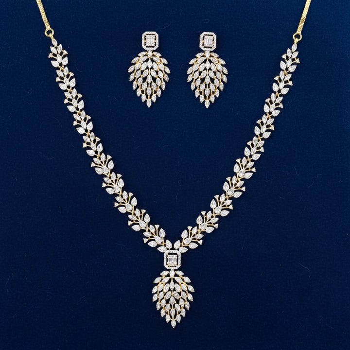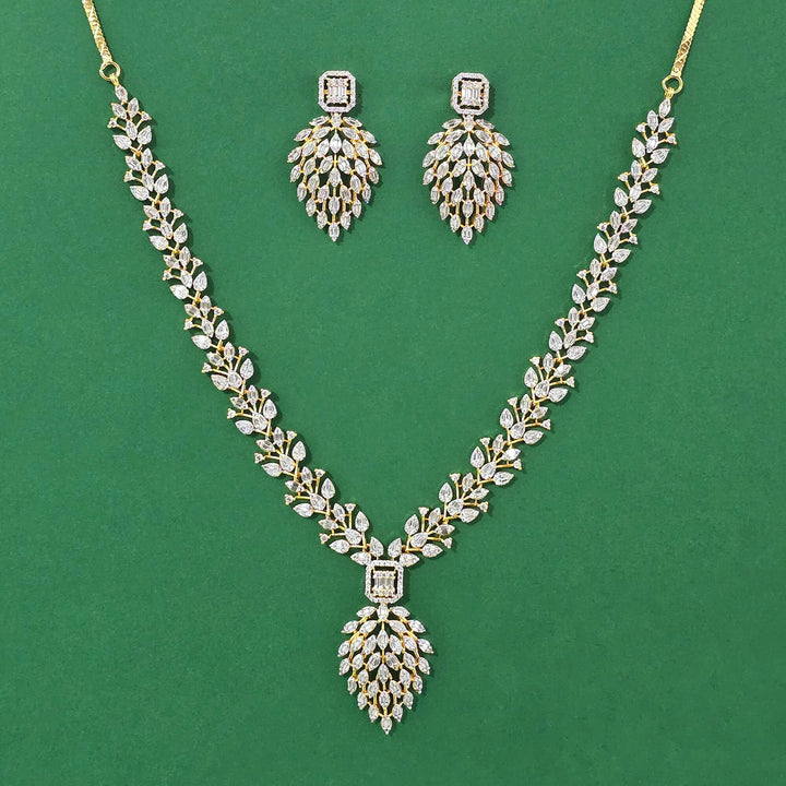 441218 Cubic Zirconia Classic Necklace Set With Mehndi 2 Tone Rhodium Plating