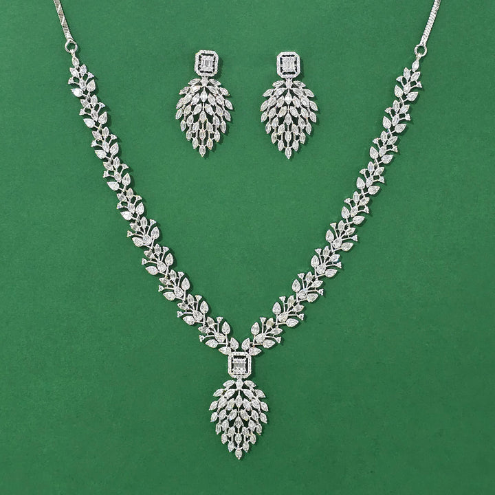 Weight: 43.0 Grams, Earring Height = 43 mm || Width = 24 mm,Regular Size And Adjustable,Mehndi Plating,2 Tone Plating,Rhodium Plating,American Diamond Necklace Set