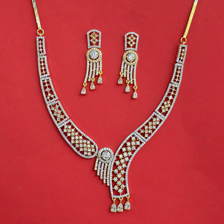 442452 Cubic Zirconia Classic Necklace Set With Mehndi 2 Tone Rhodium Plating