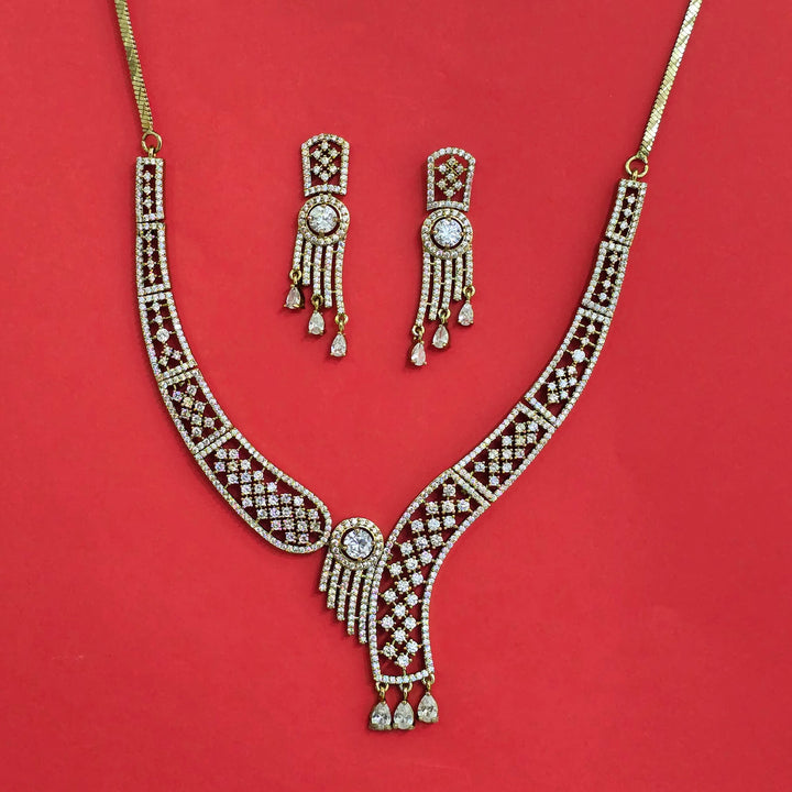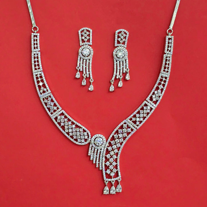 Weight: 43.0 Grams, Earring Height = 48 mm || Width = 15 mm,Regular Size And Adjustable,Handmade Design,Mehndi Plating,2 Tone Plating,Rhodium Plating,American Diamond Necklace Set,American Diamond Necklace Set