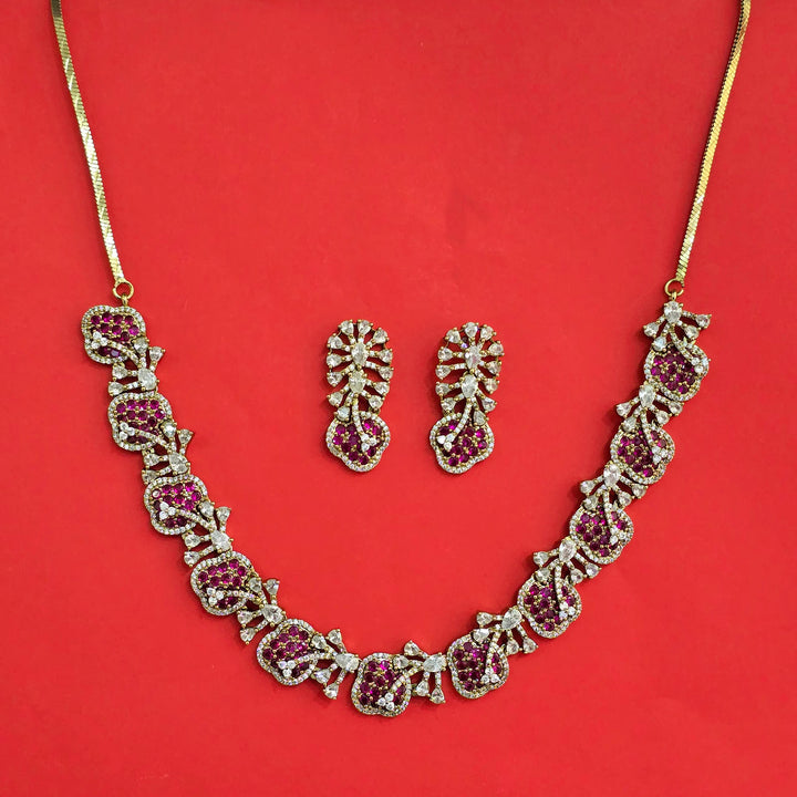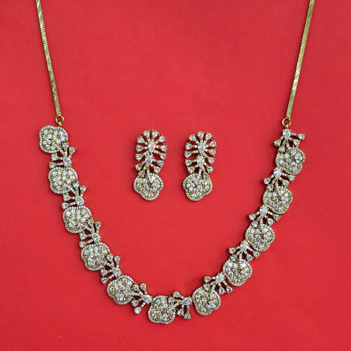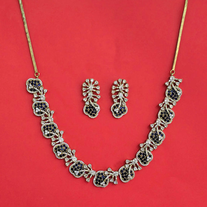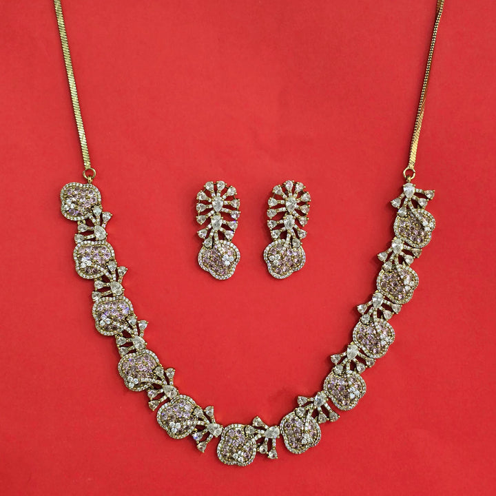 442441 Cubic Zirconia Classic Necklace Set With Mehndi Plating