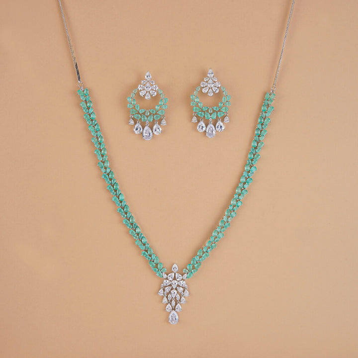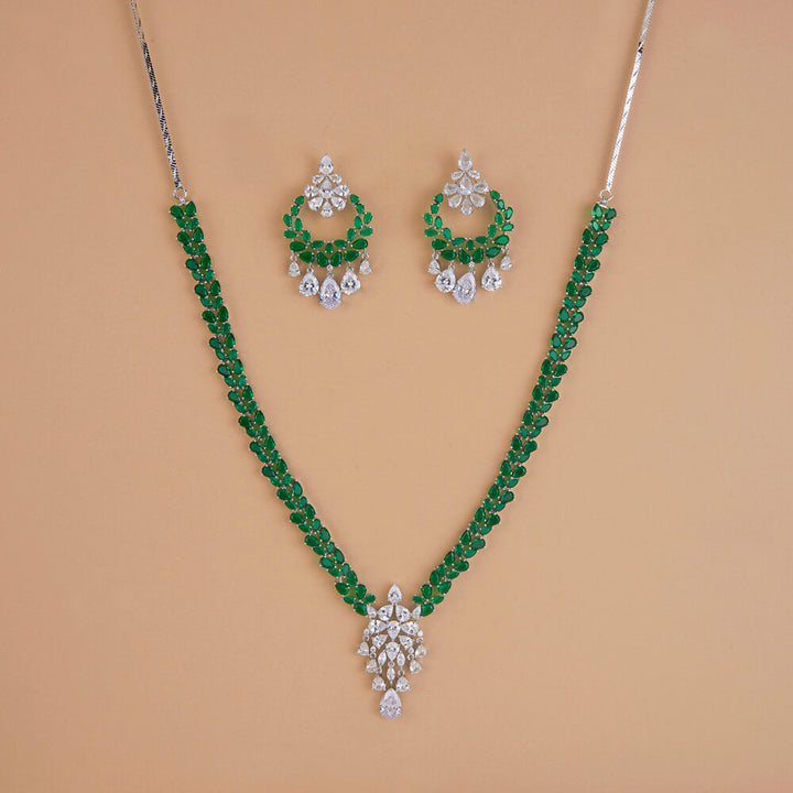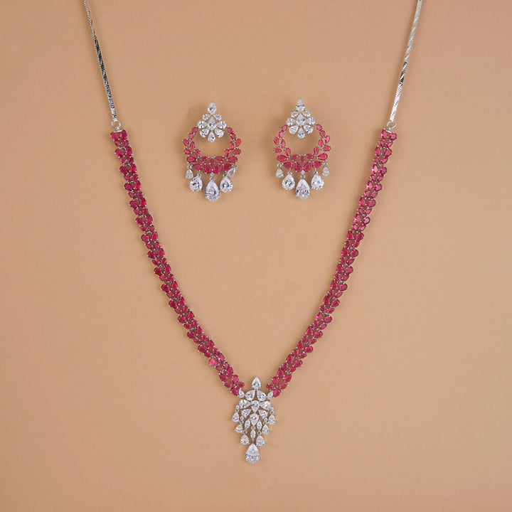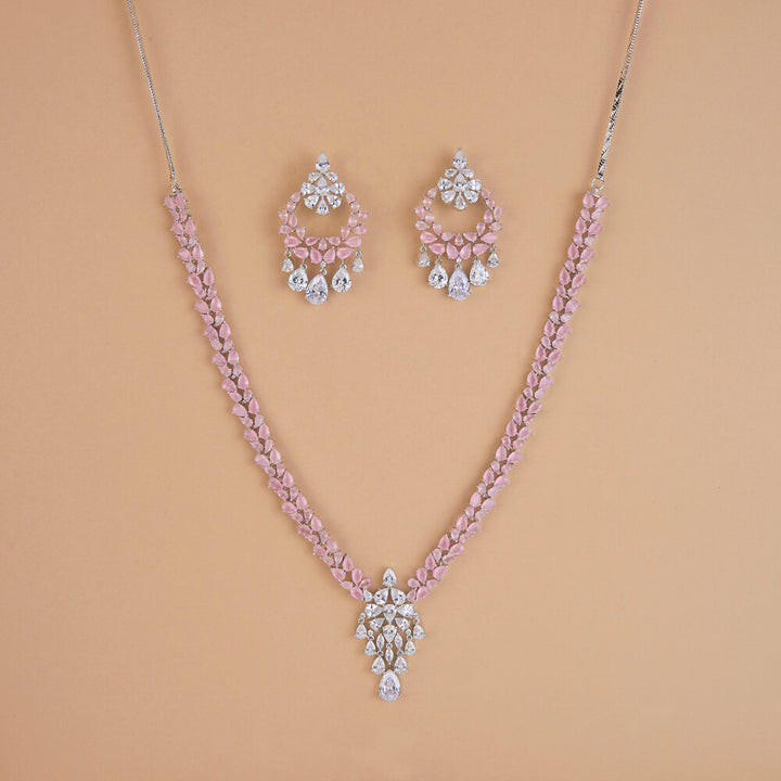 Weight: 78.0 Grams, Regular Size And Adjustable,Handmade Design,Rhodium Plating,American Diamond Necklace Set