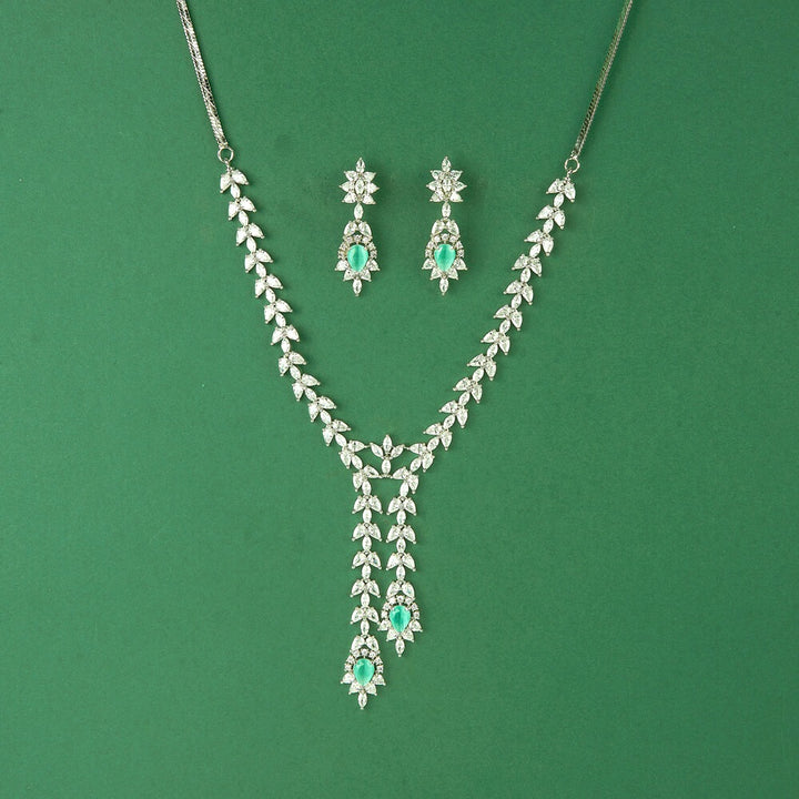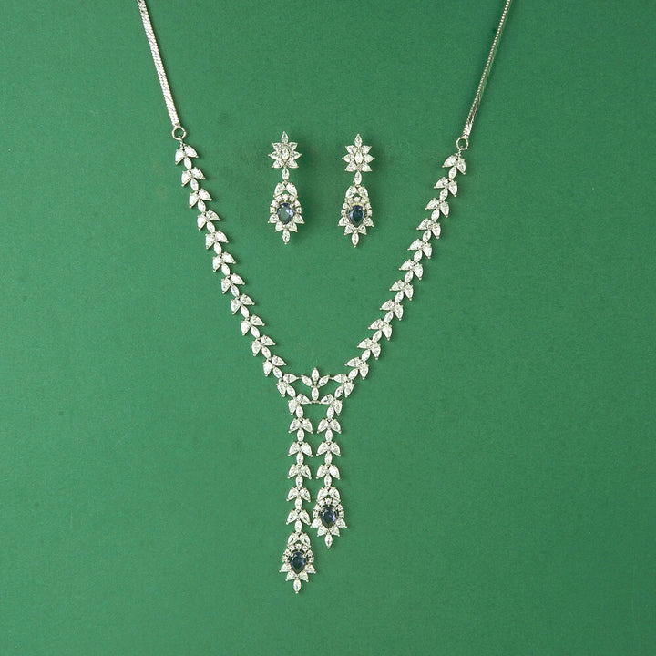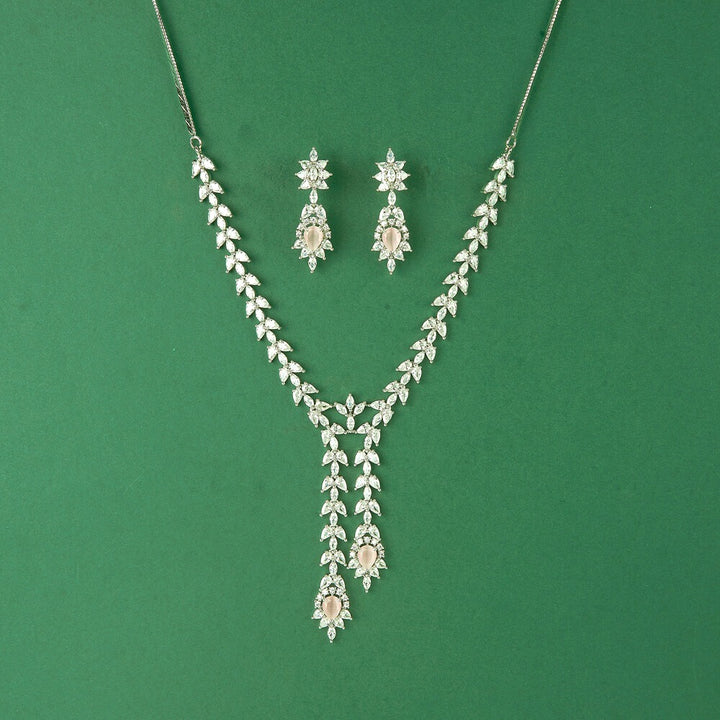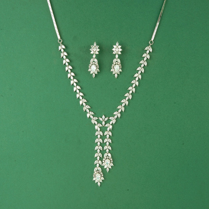 434383 Cubic Zirconia Classic Necklace Set With Rhodium Plating