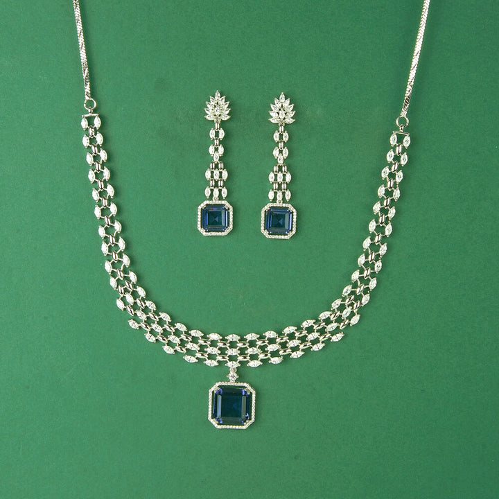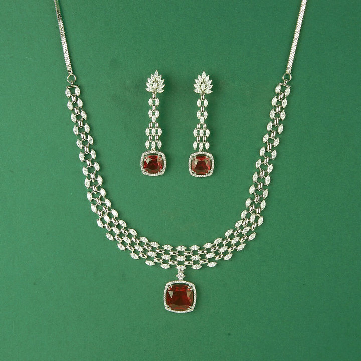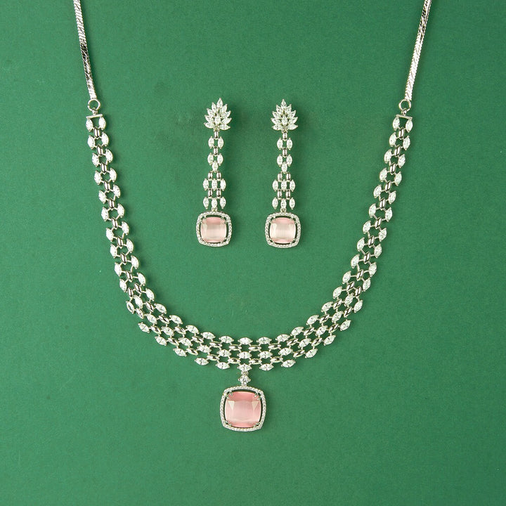 434456 Cubic Zirconia Classic Necklace Set With Rhodium Plating