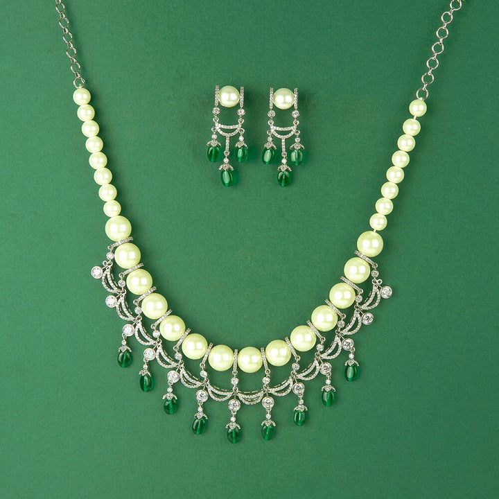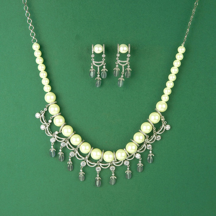 435373 Cubic Zirconia Classic Necklace Set With Rhodium Plating