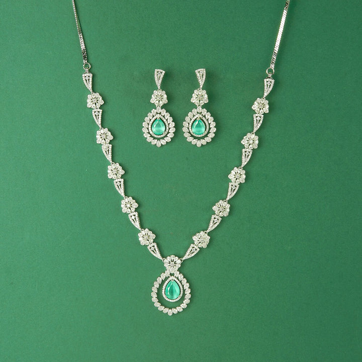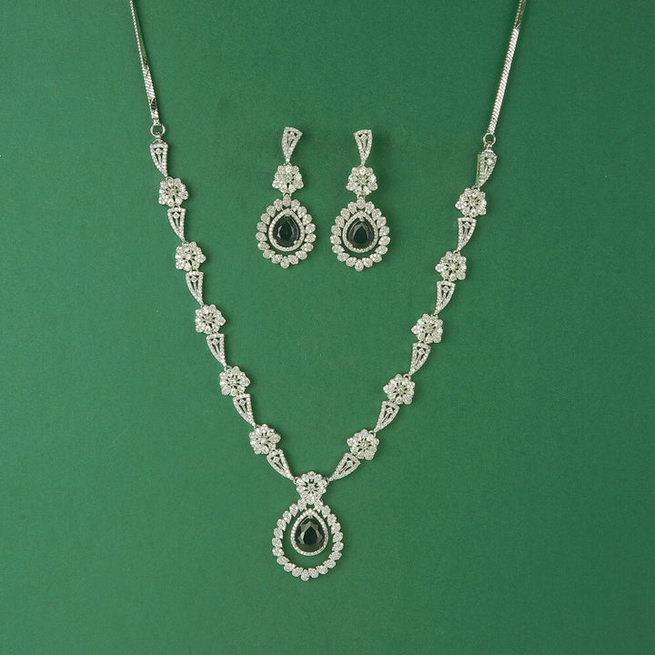 435384 Cubic Zirconia Classic Necklace Set With Rhodium Plating
