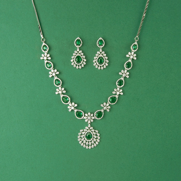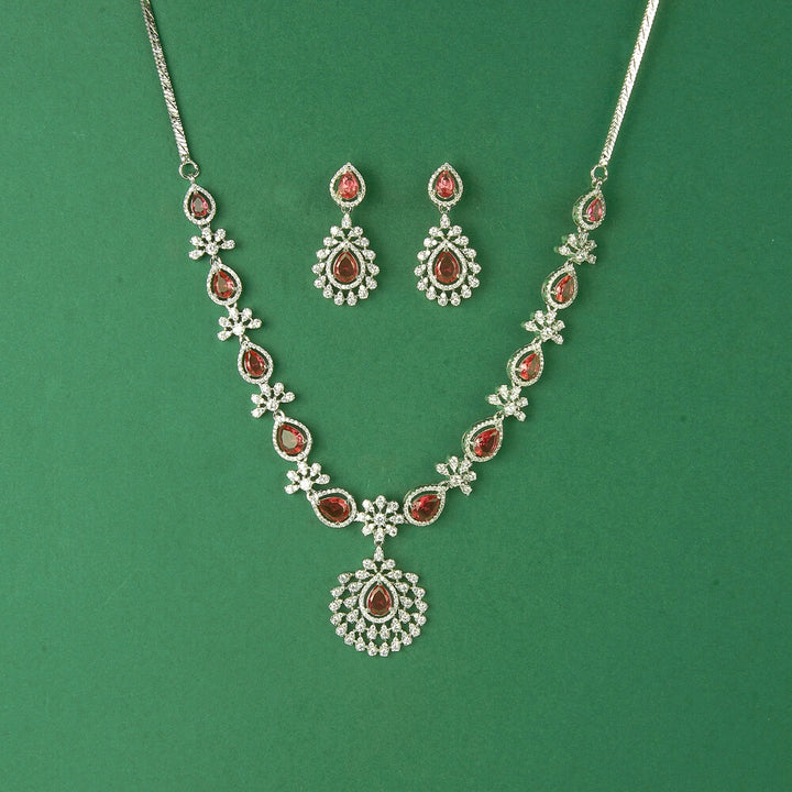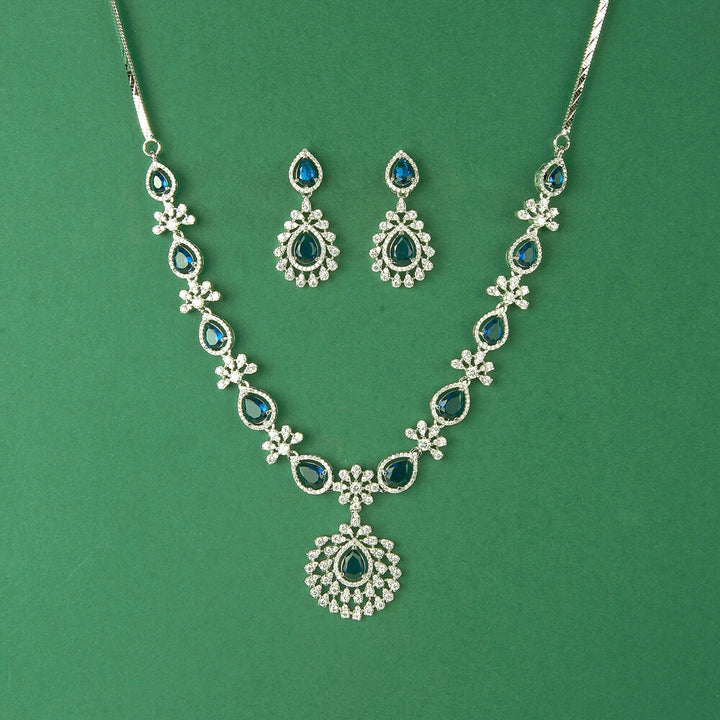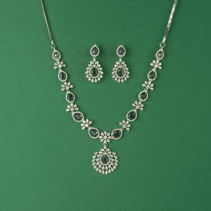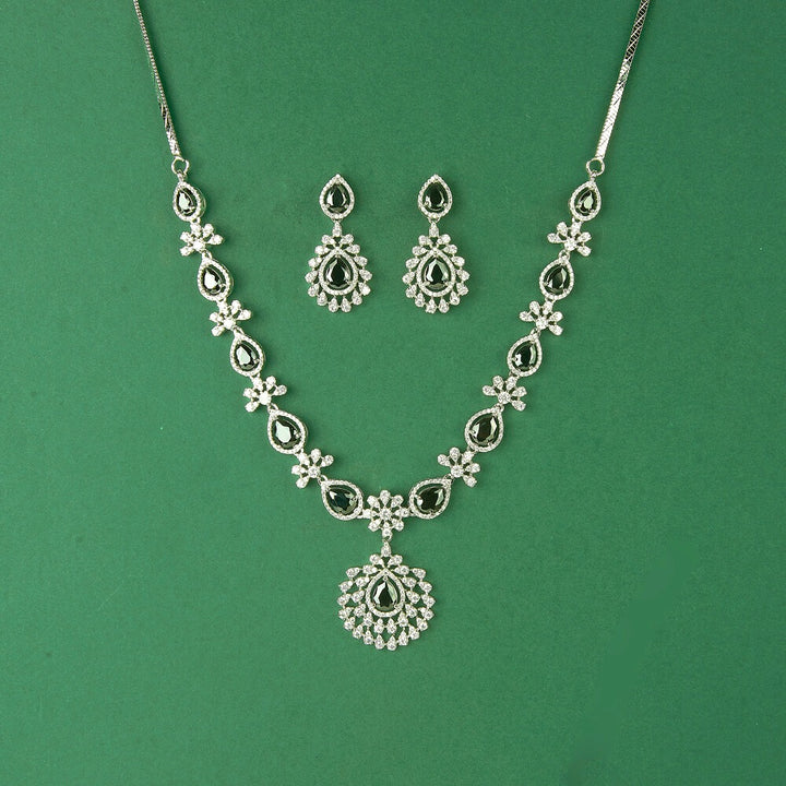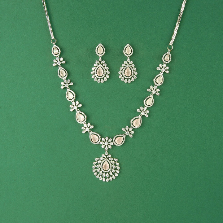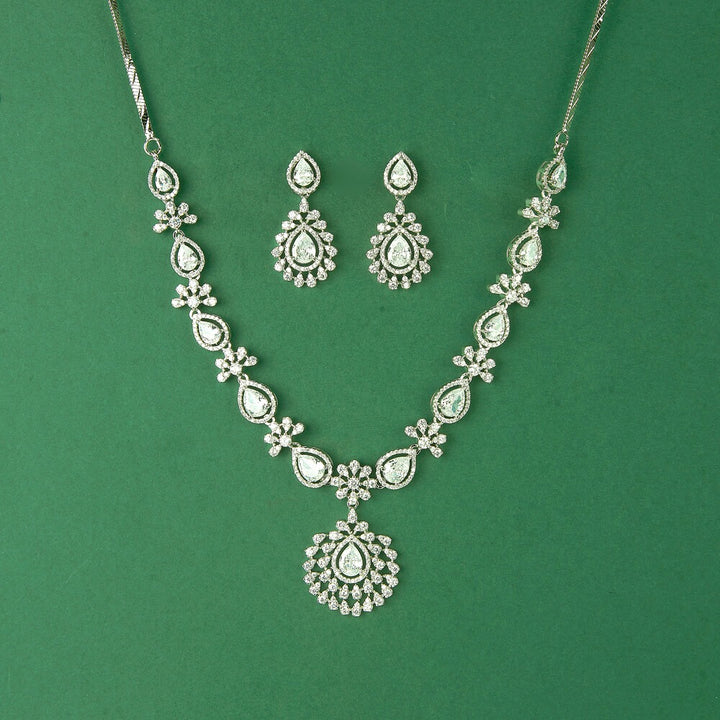 435613 Cubic Zirconia Classic Necklace Set With Rhodium Plating