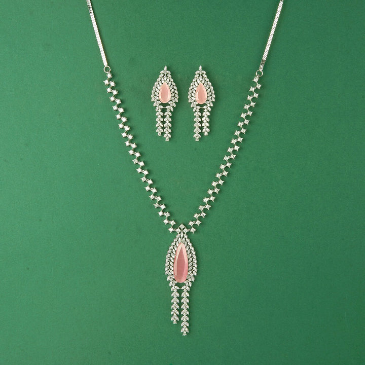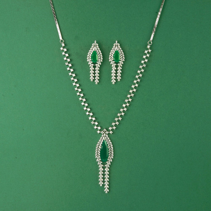 435833 Cubic Zirconia Classic Necklace Set With Rhodium Plating