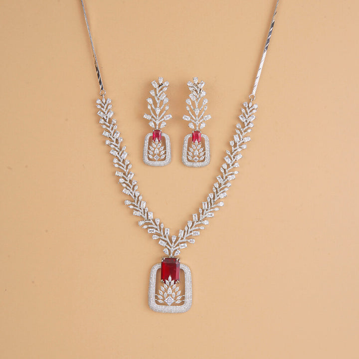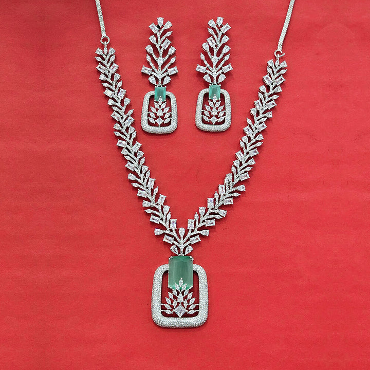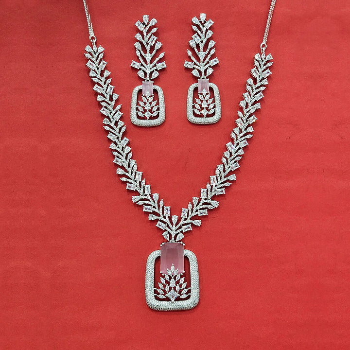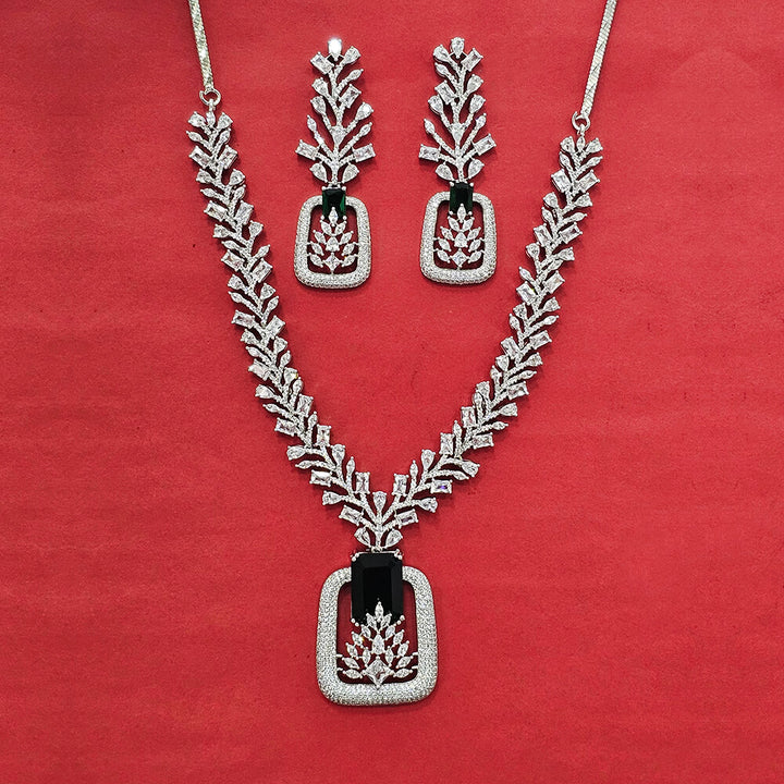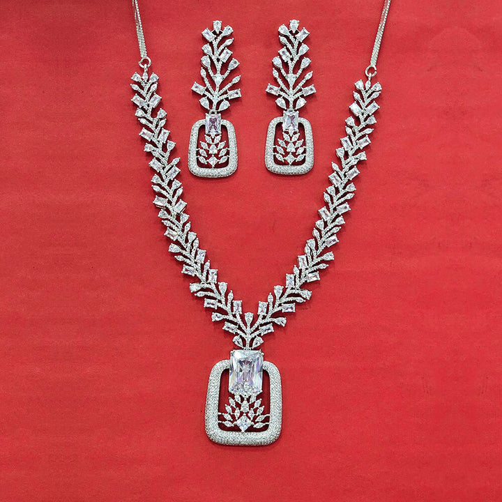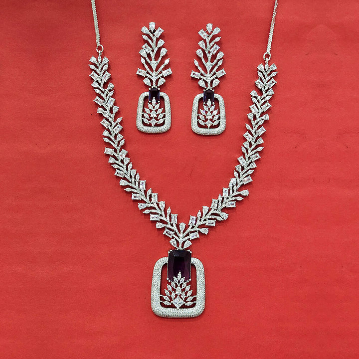 Weight: 69.0 Grams, Earring Height = 62 mm || Width = 20 mm,Regular Size And Adjustable,Handmade Design,Rhodium Plating,American Diamond Necklace Set