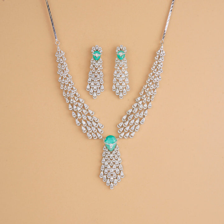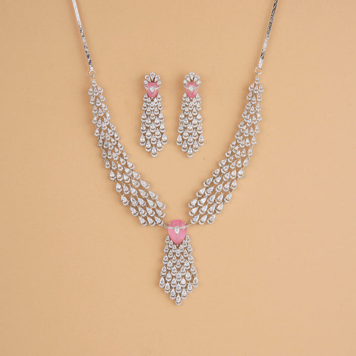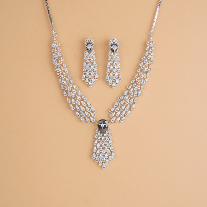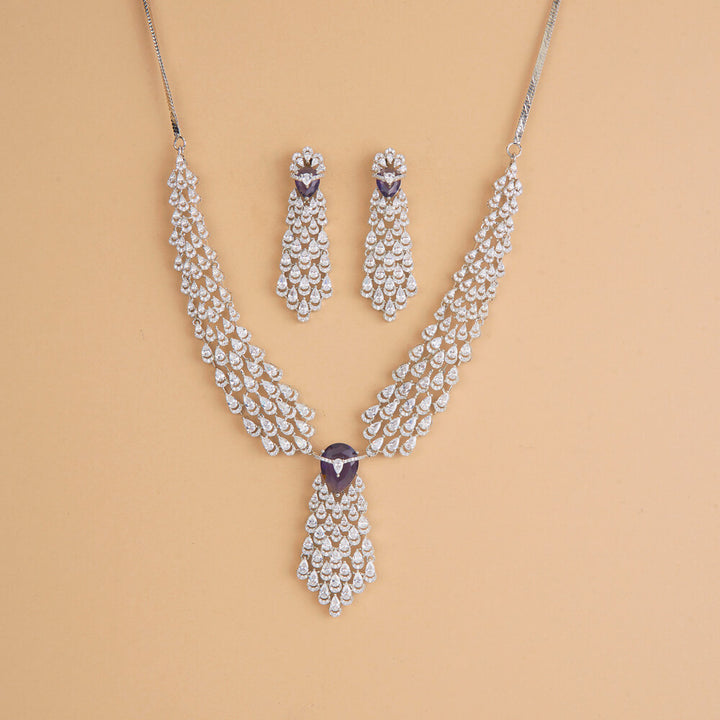 Weight: 61.0 Grams, Regular Size And Adjustable,Bollywood Look,Rhodium Plating,American Diamond Necklace Set