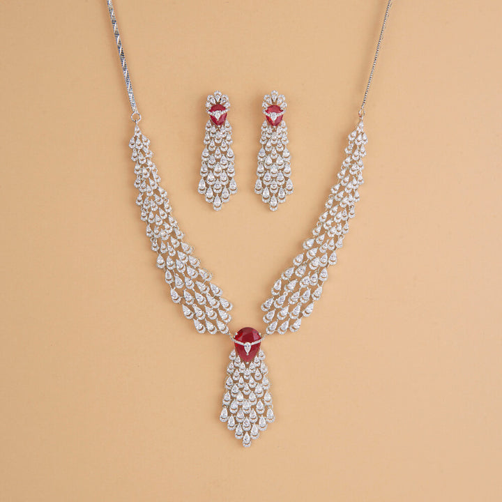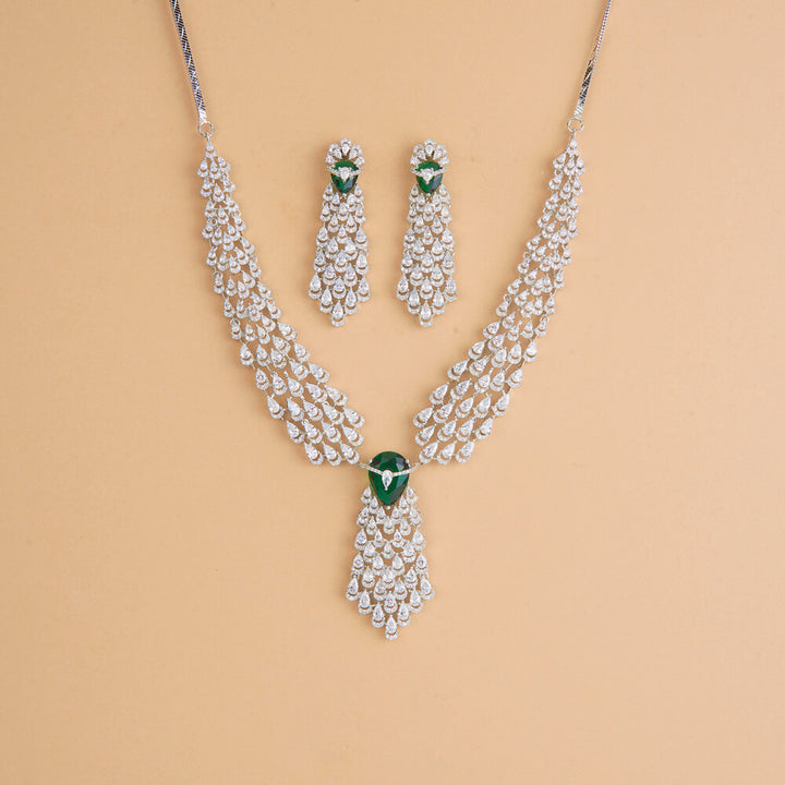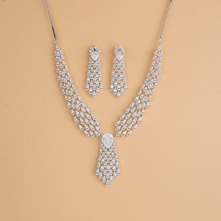 435839 Cubic Zirconia Classic Necklace Set With Rhodium Plating