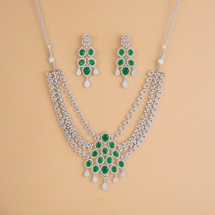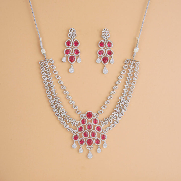 Weight: 98.0 Grams, Regular Size And Adjustable,Elegant Look,Rhodium Plating,American Diamond Necklace Set