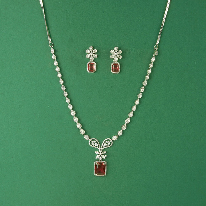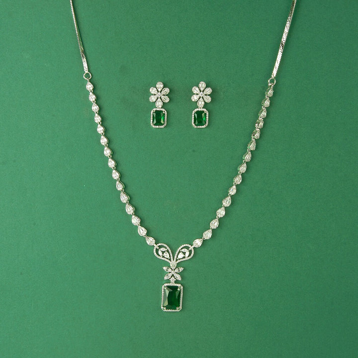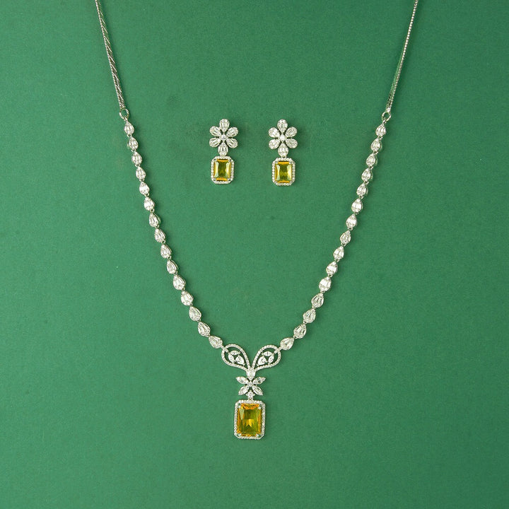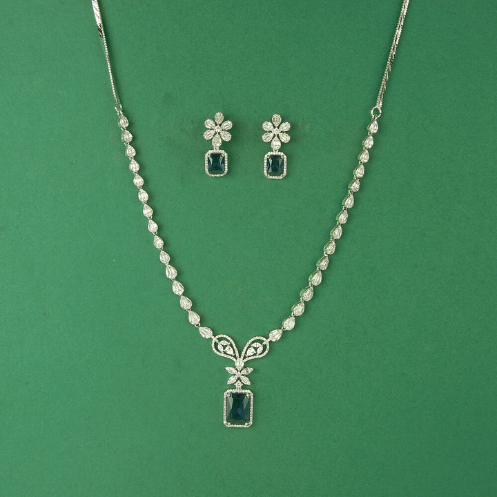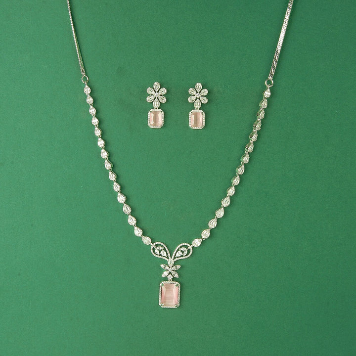 436267 Cubic Zirconia Classic Necklace Set With Rhodium Plating