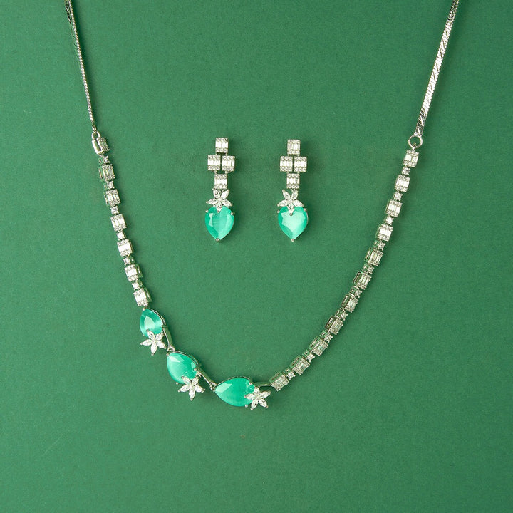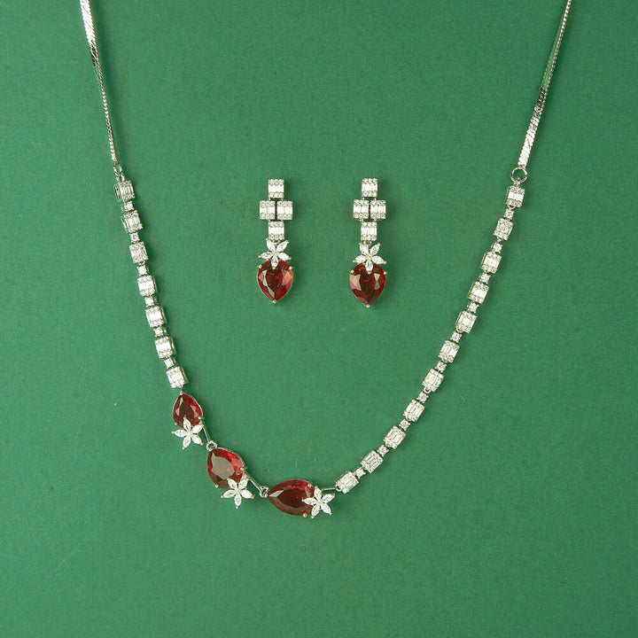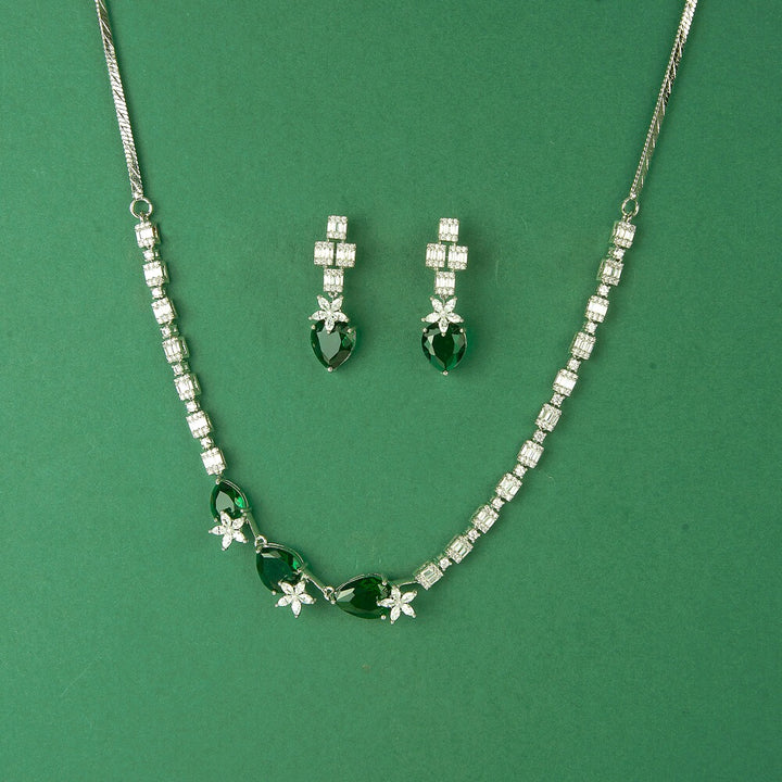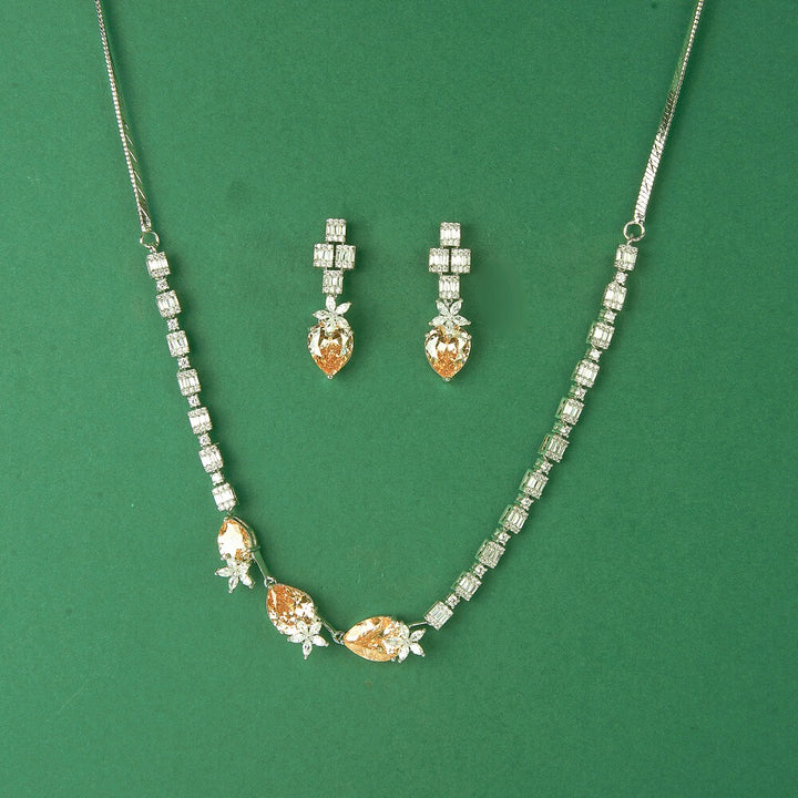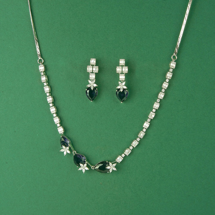 436270 Cubic Zirconia Classic Necklace Set With Rhodium Plating