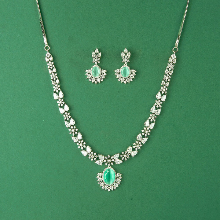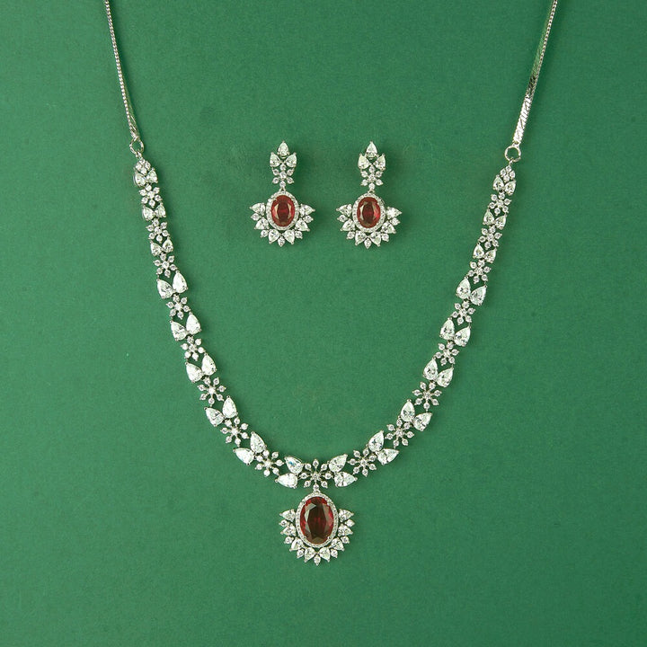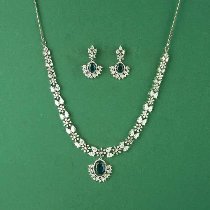 436271 Cubic Zirconia Classic Necklace Set With Rhodium Plating
