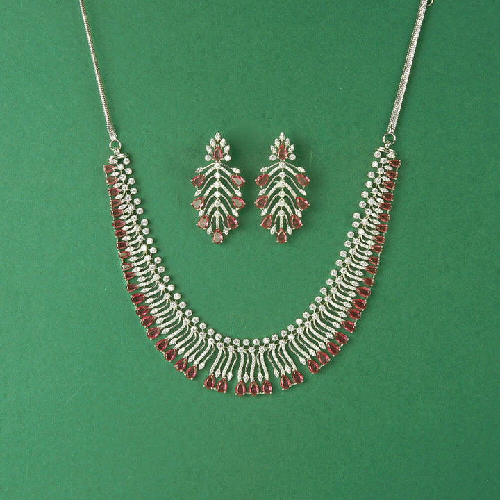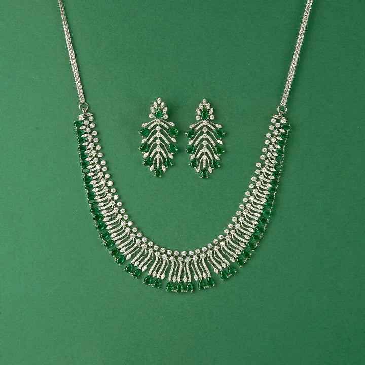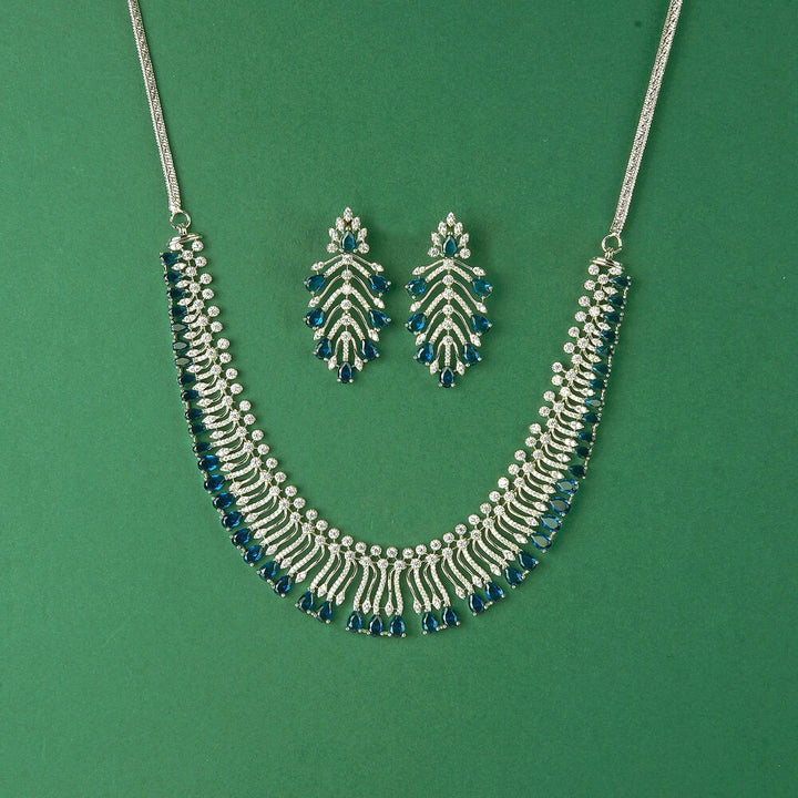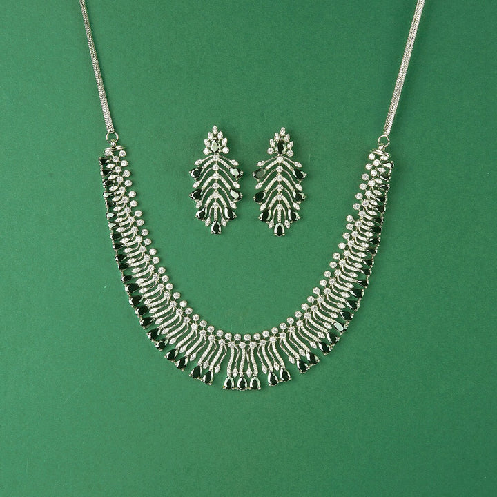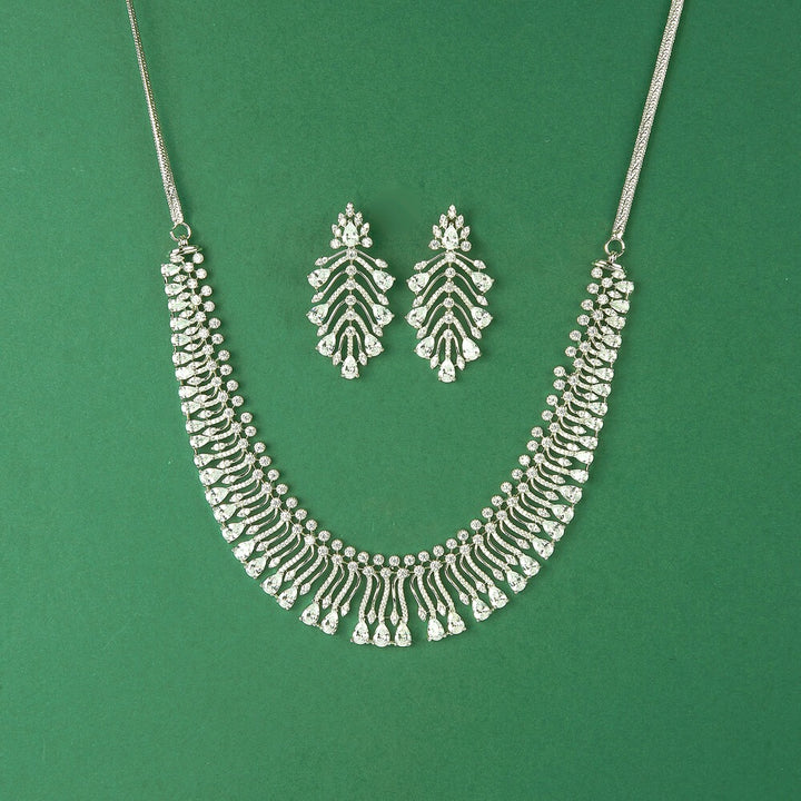436540 Cubic Zirconia Classic Necklace Set With Rhodium Plating