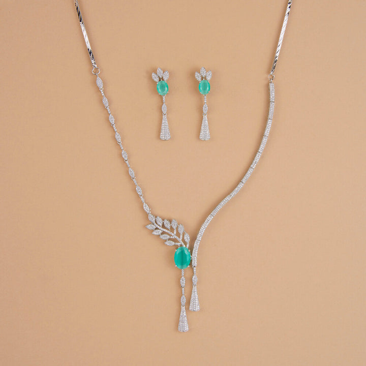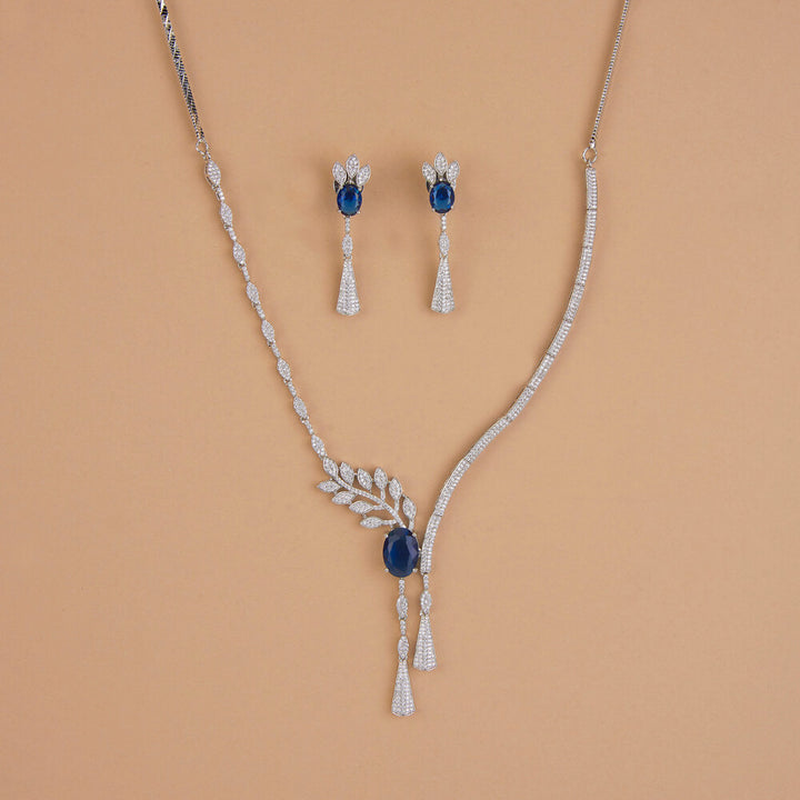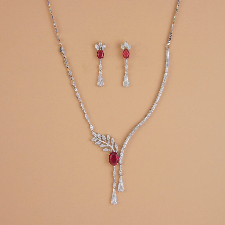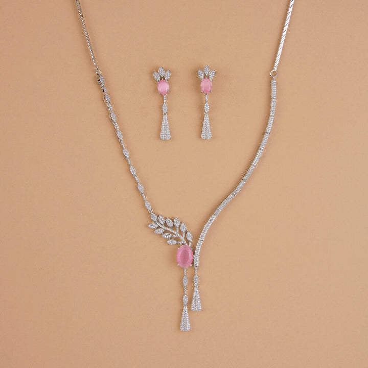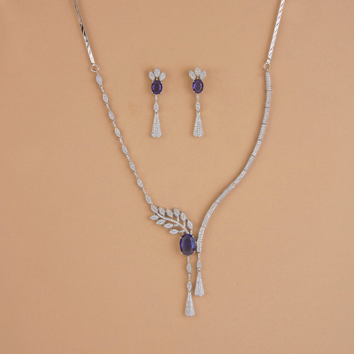 Weight: 26.0 Grams, Regular Size And Adjustable,Latest Design,Rhodium Plating,American Diamond Necklace Set