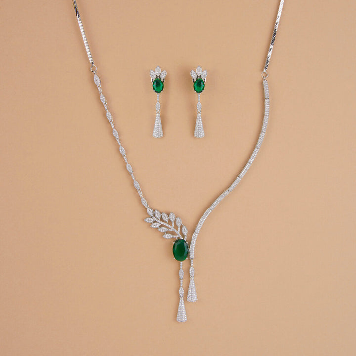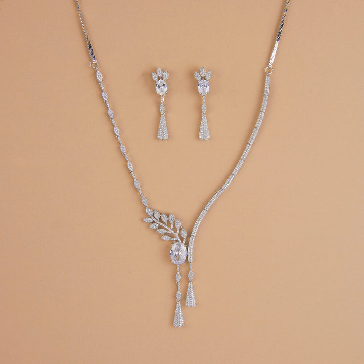 437262 Cubic Zirconia Classic Necklace Set With Rhodium Plating