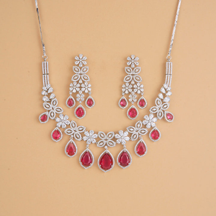 437315 Cubic Zirconia Classic Necklace Set With Rhodium Plating