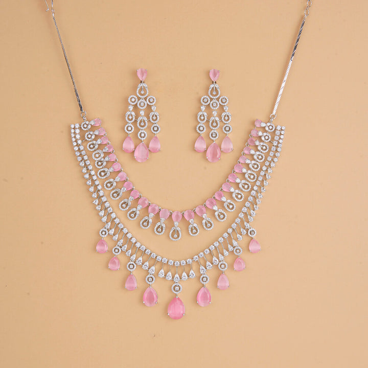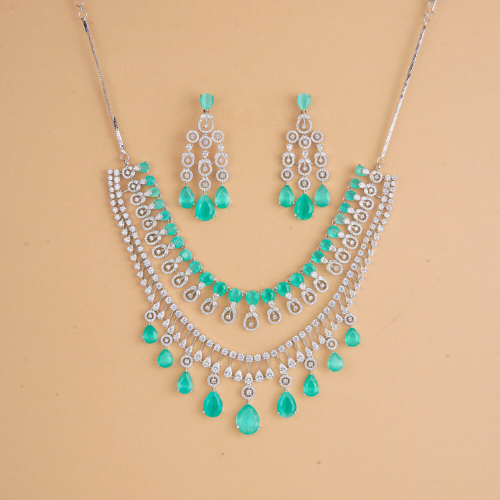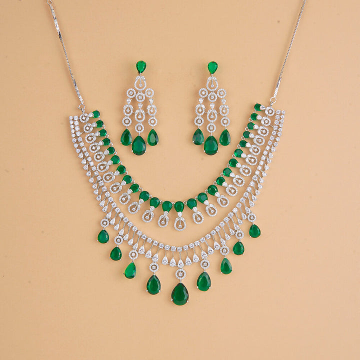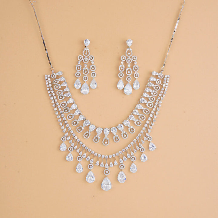 437319 Cubic Zirconia Classic Necklace Set With Rhodium Plating