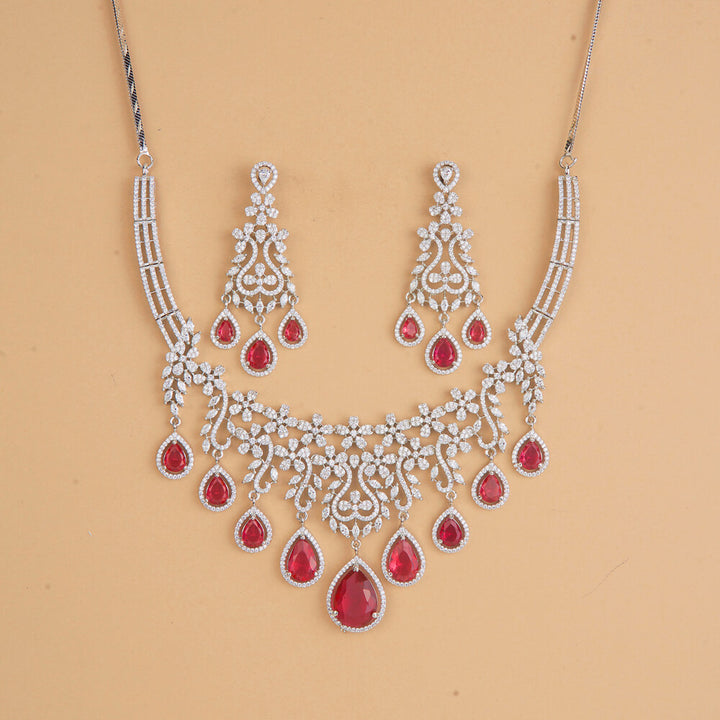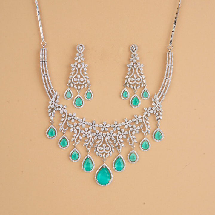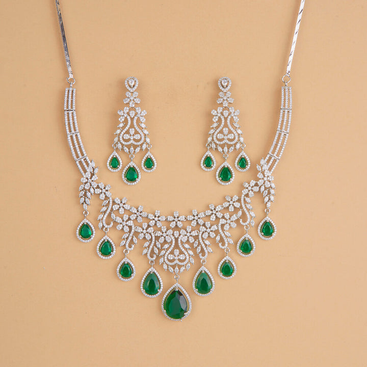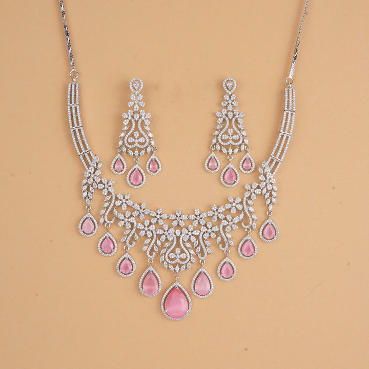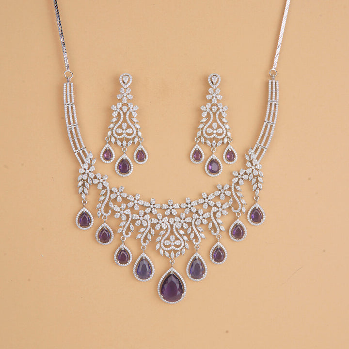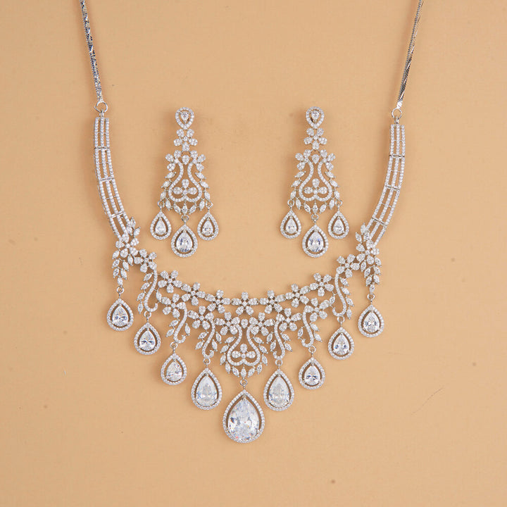 437320 Cubic Zirconia Classic Necklace Set With Rhodium Plating