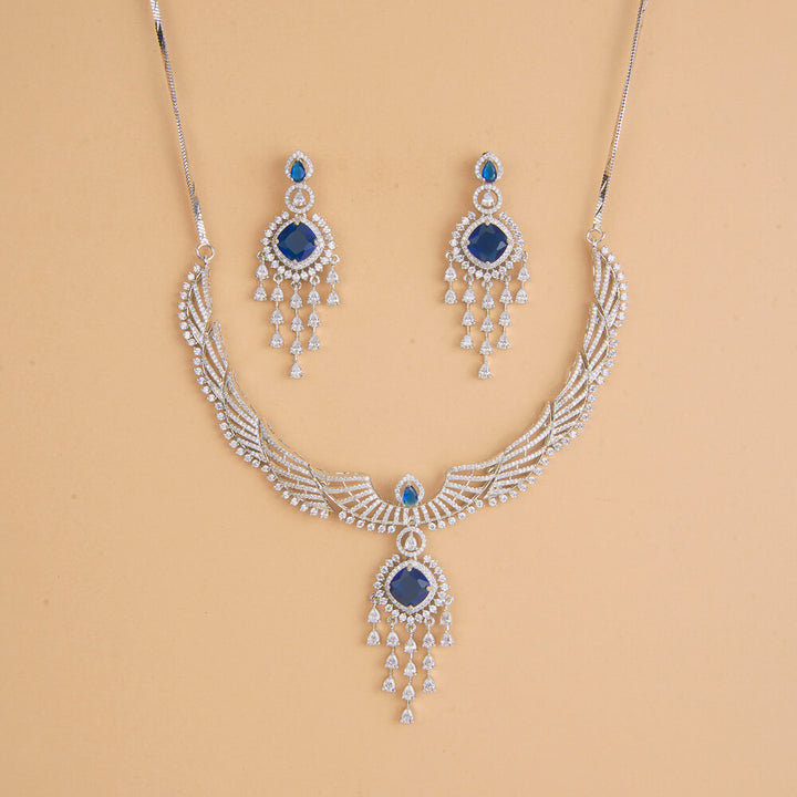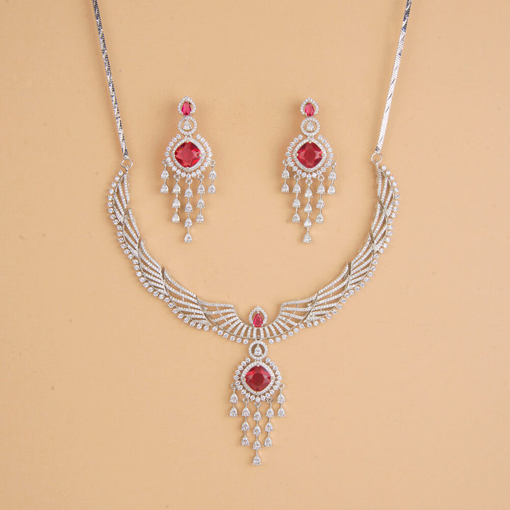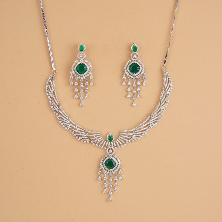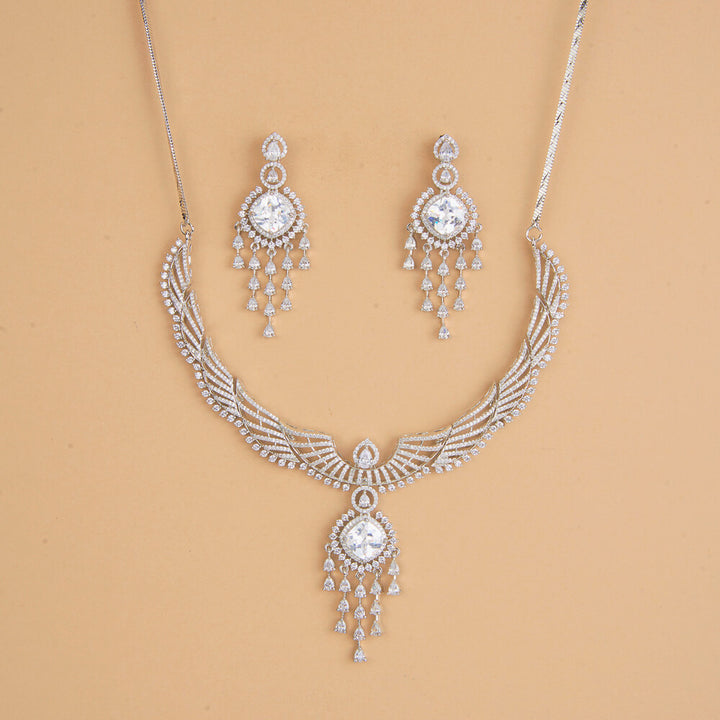 437323 Cubic Zirconia Classic Necklace Set With Rhodium Plating