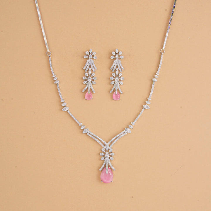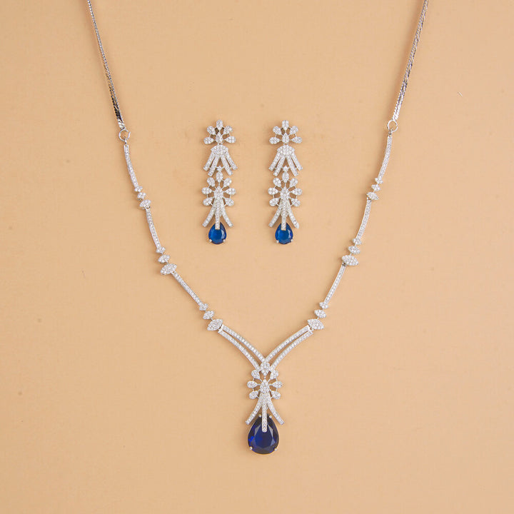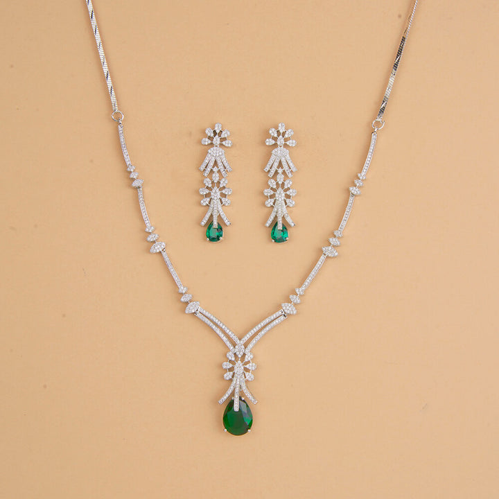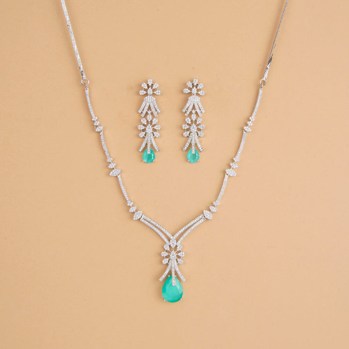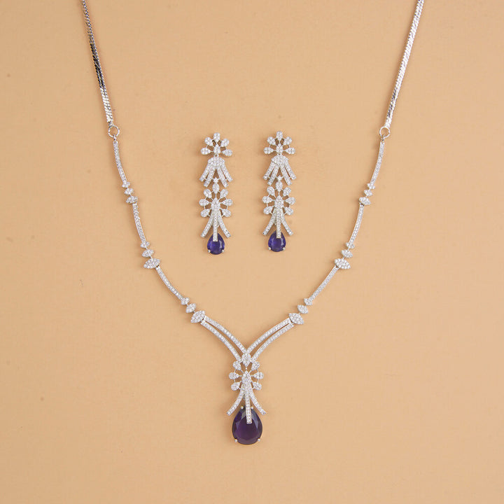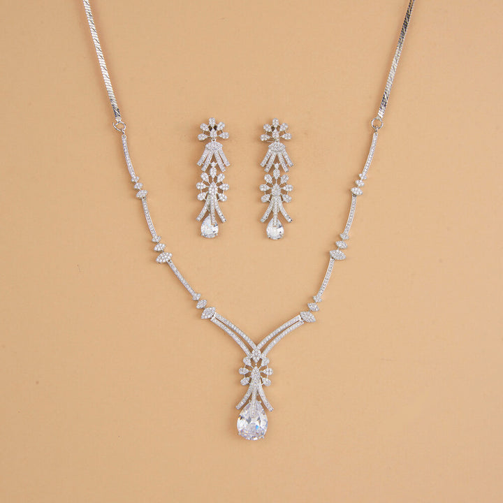 437326 Cubic Zirconia Classic Necklace Set With Rhodium Plating