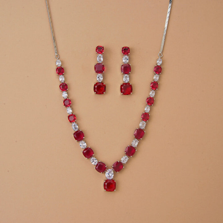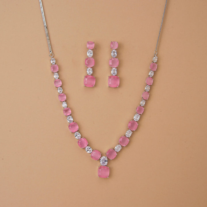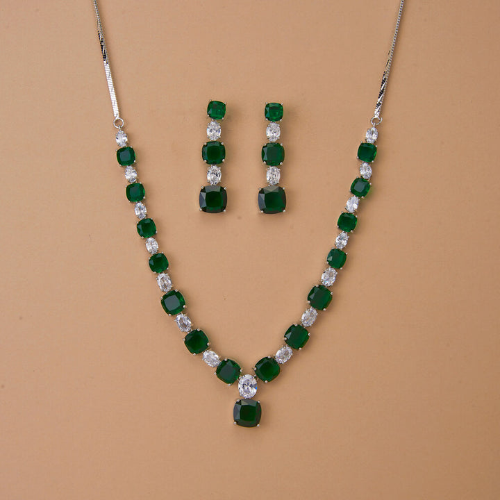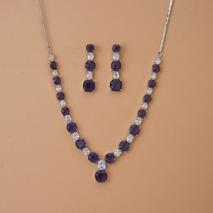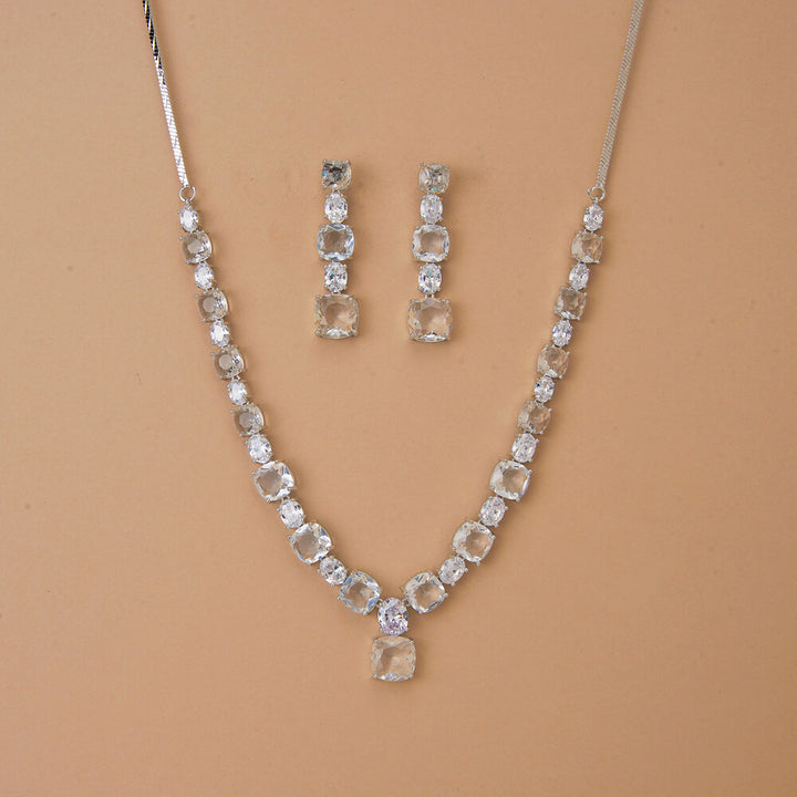 437360 Cubic Zirconia Classic Necklace Set With Rhodium Plating