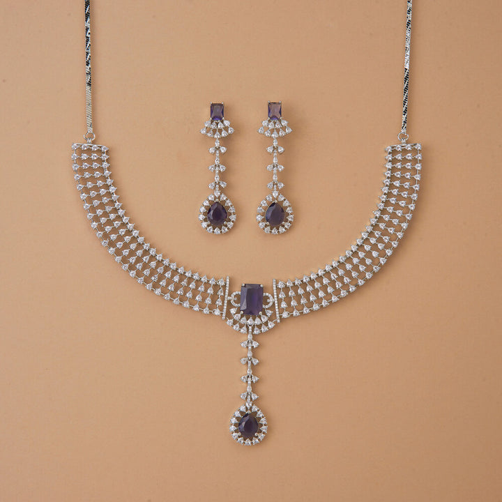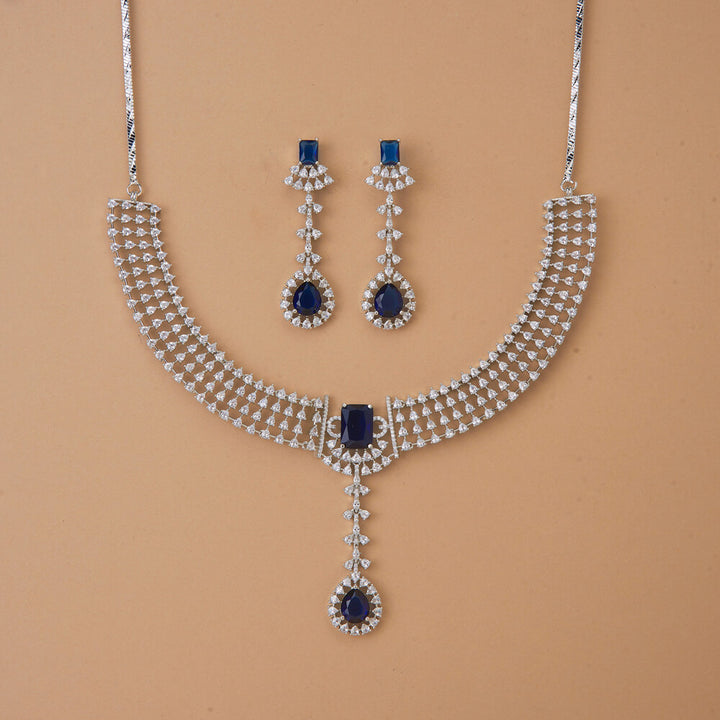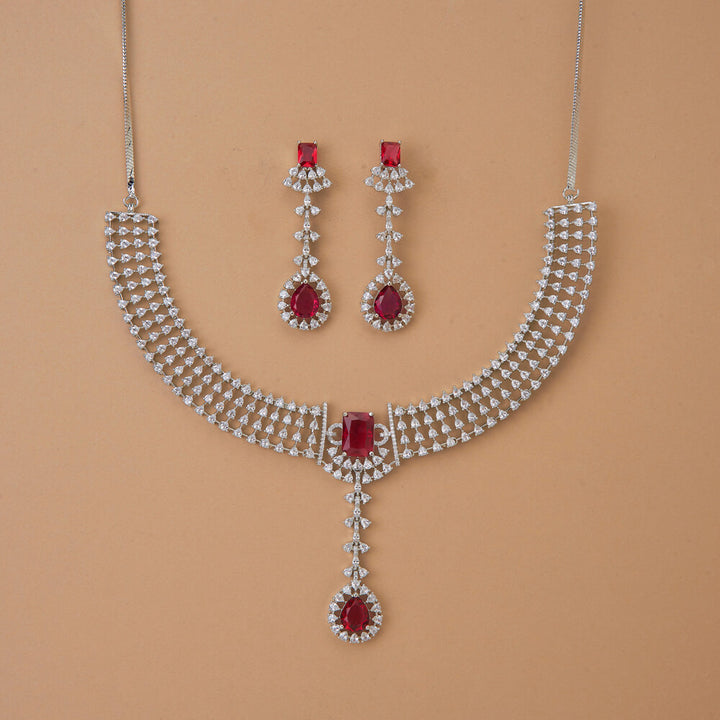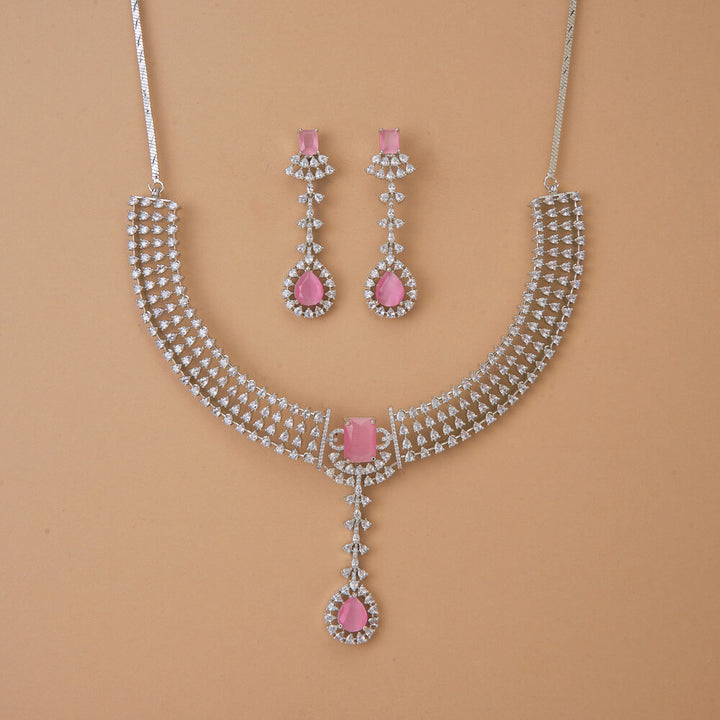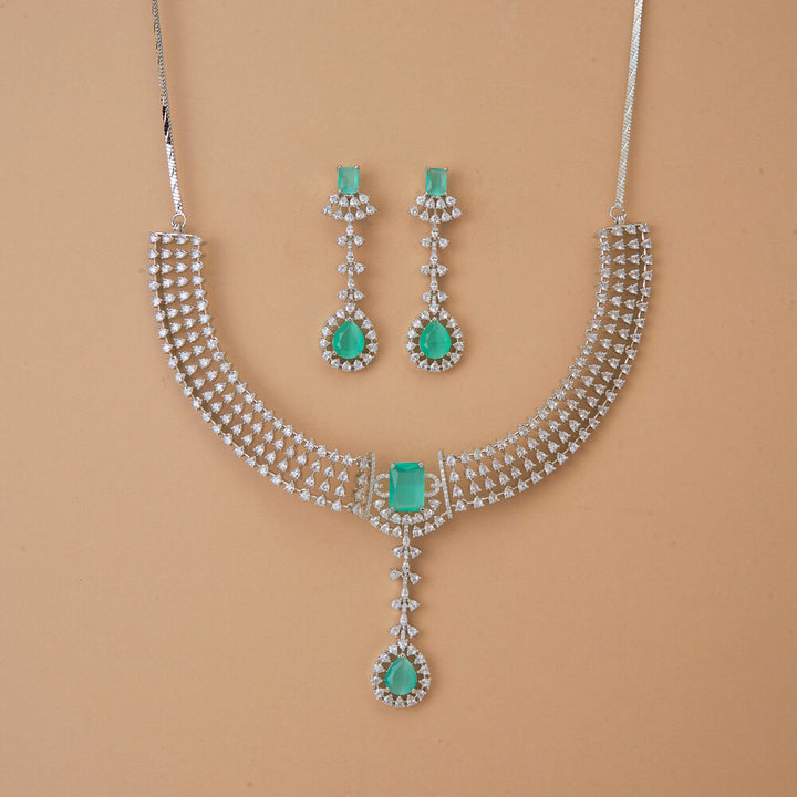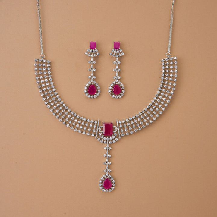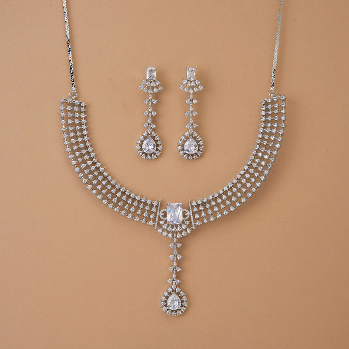 437372 Cubic Zirconia Classic Necklace Set With Rhodium Plating