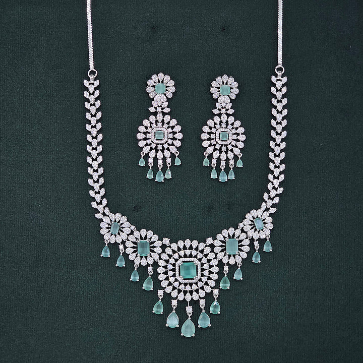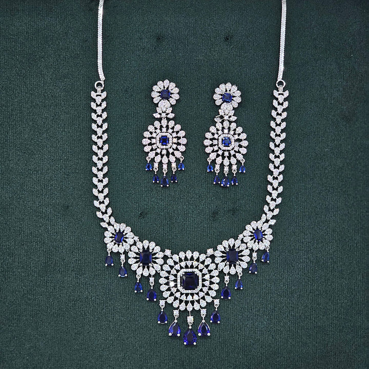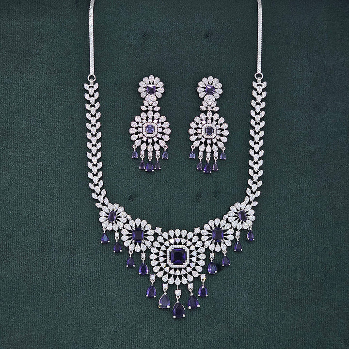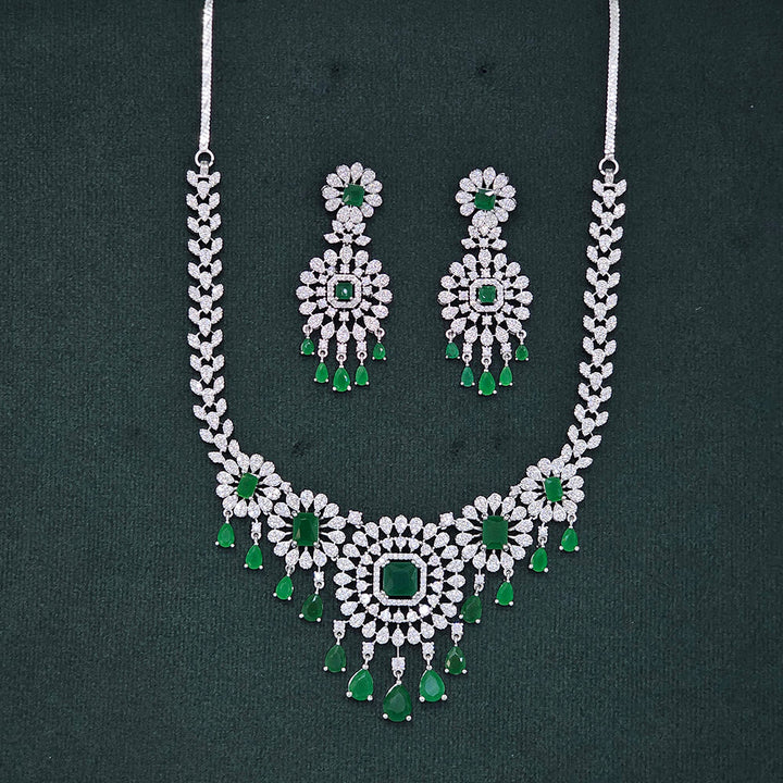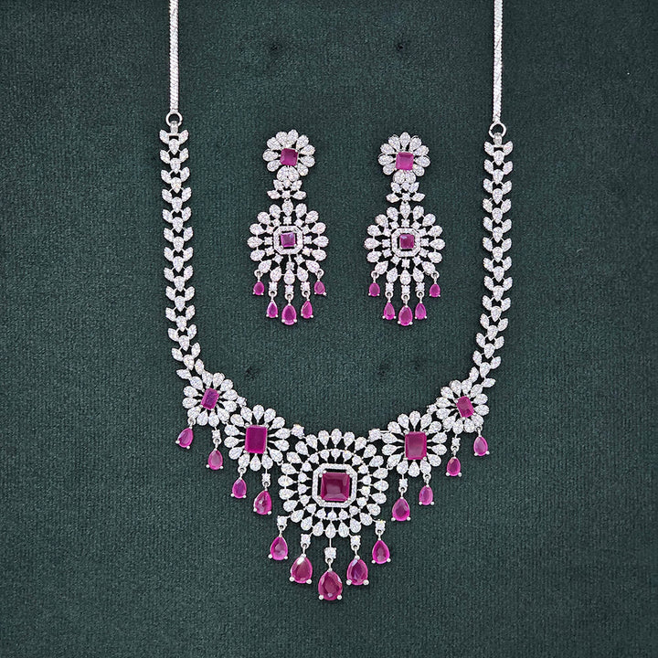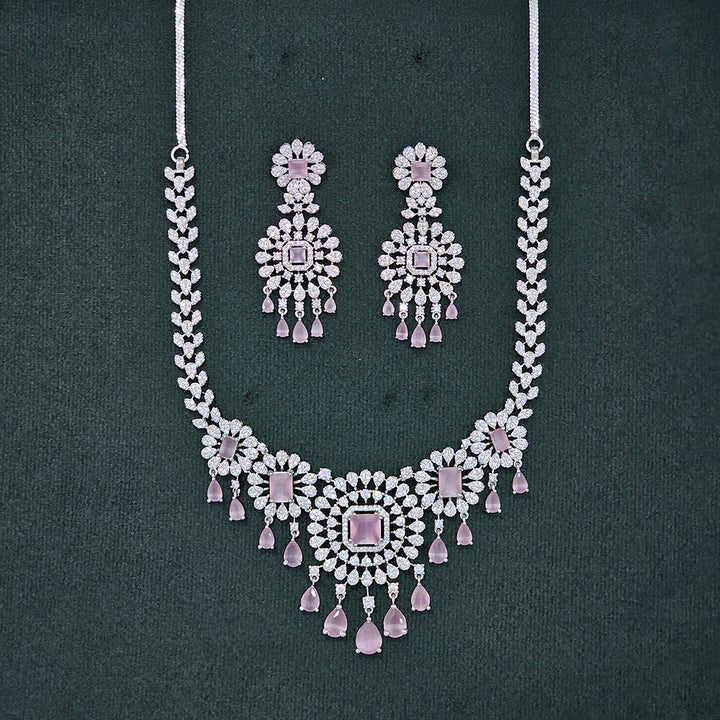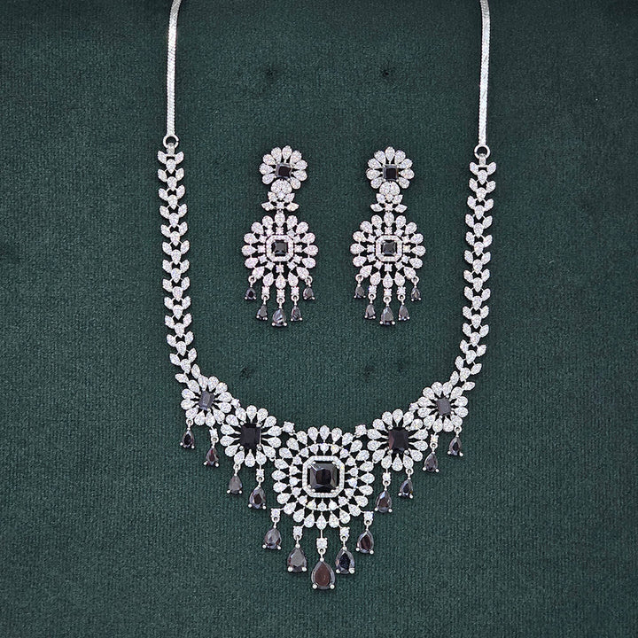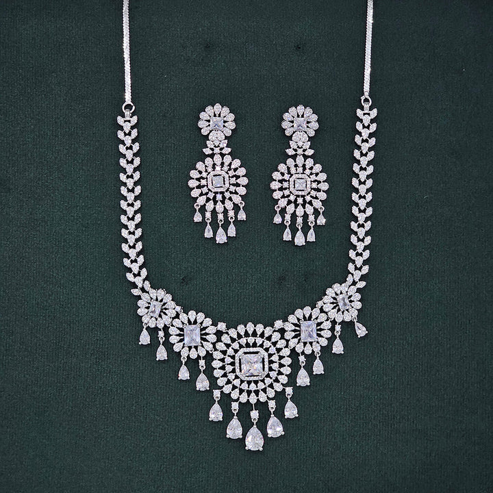 437481 Cubic Zirconia Classic Necklace Set With Rhodium Plating
