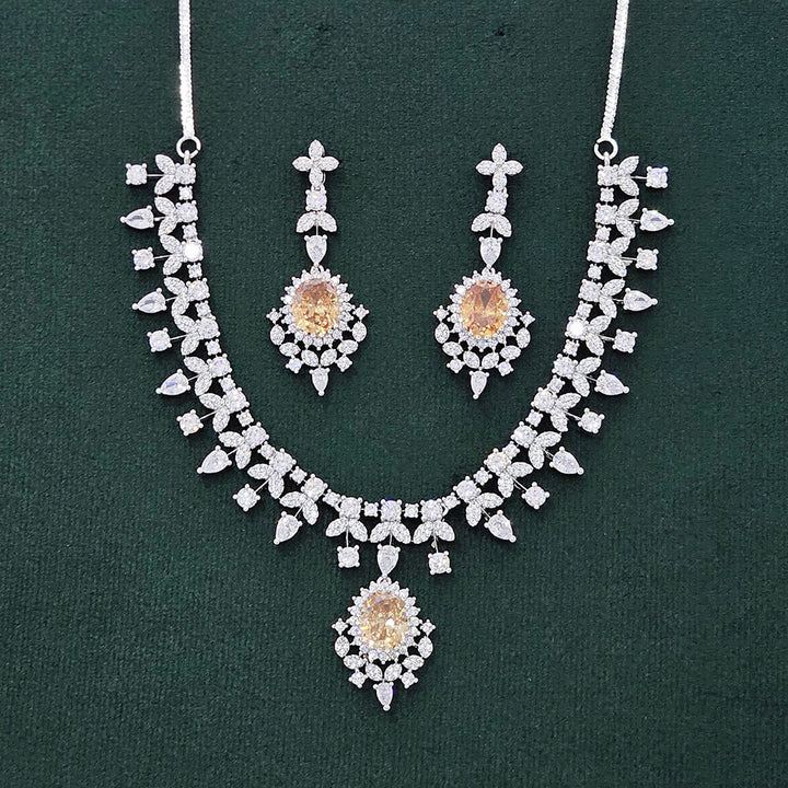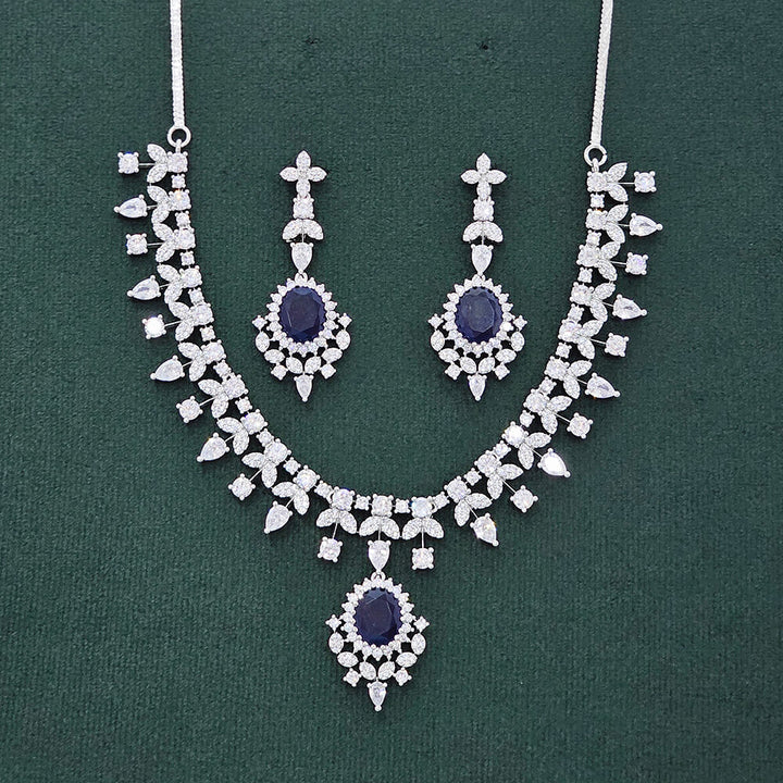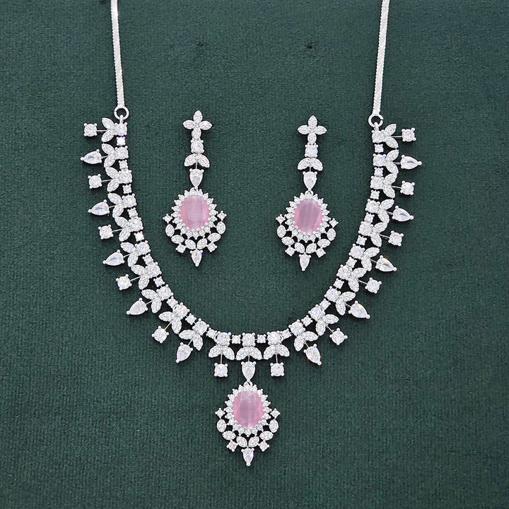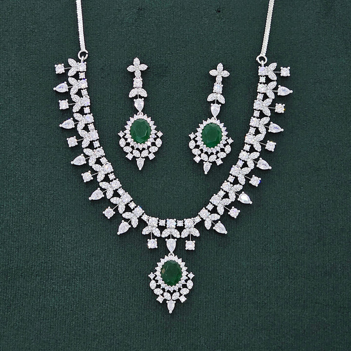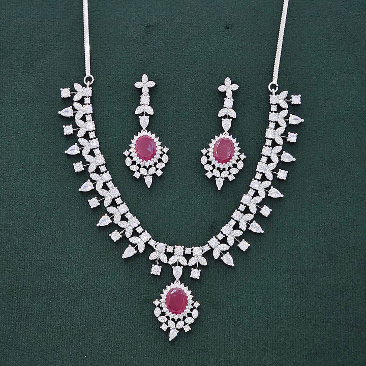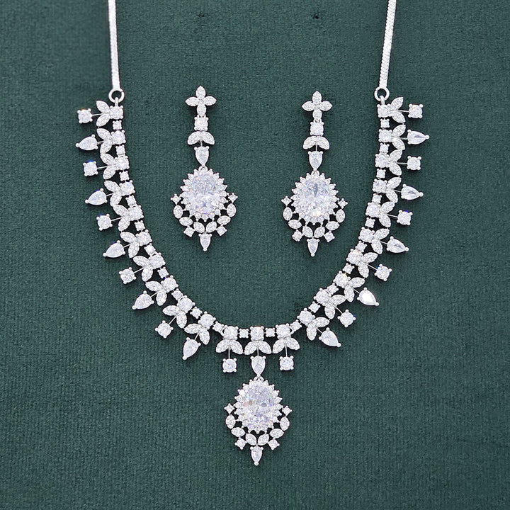 437490 Cubic Zirconia Classic Necklace Set With Rhodium Plating