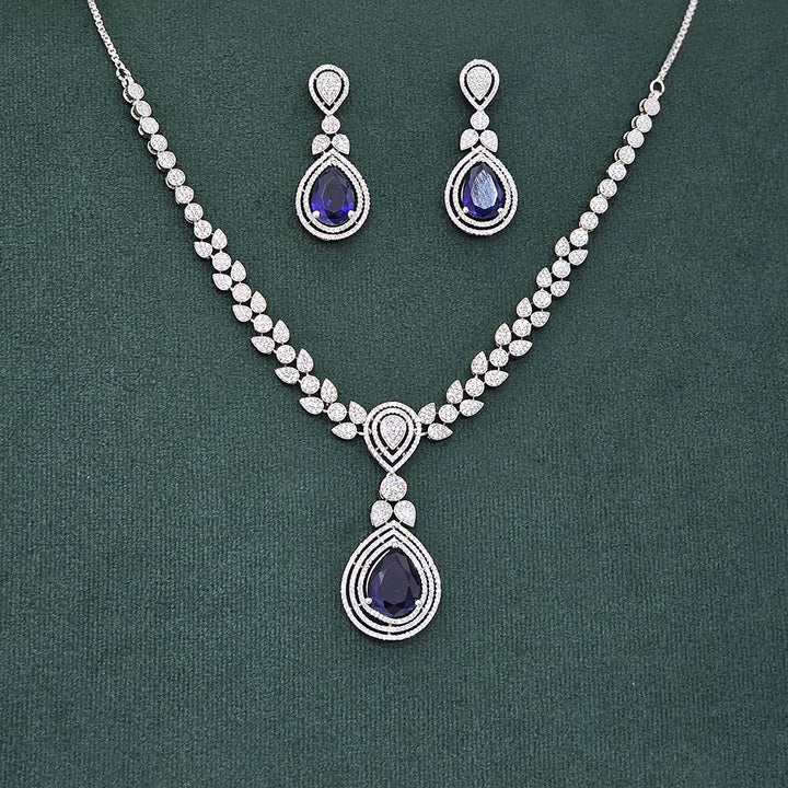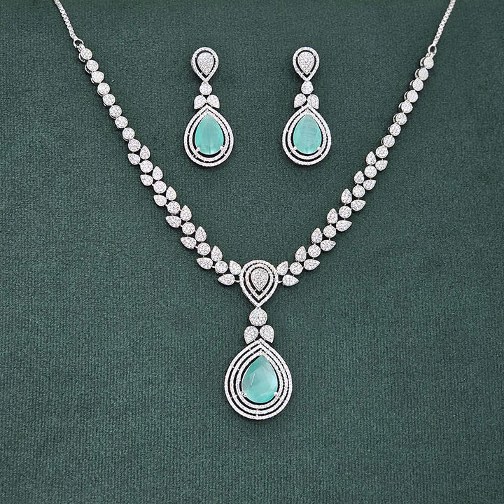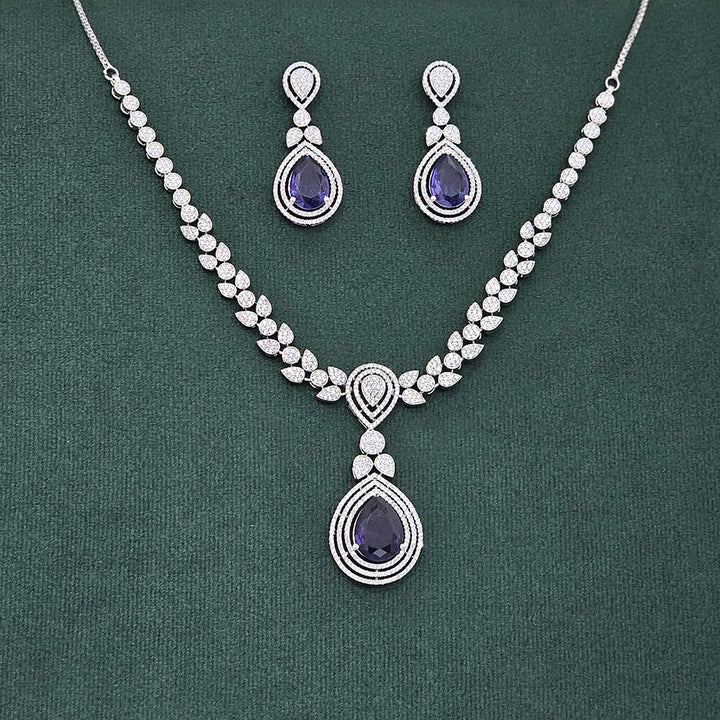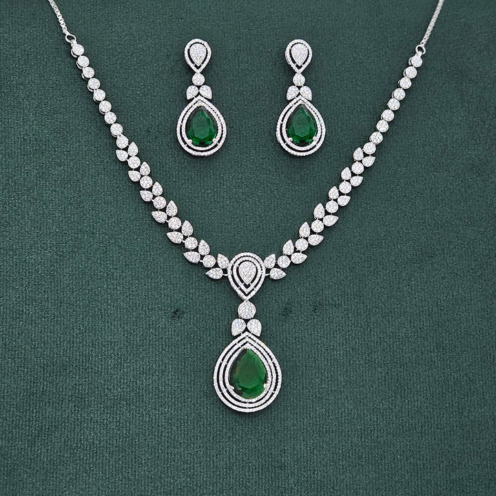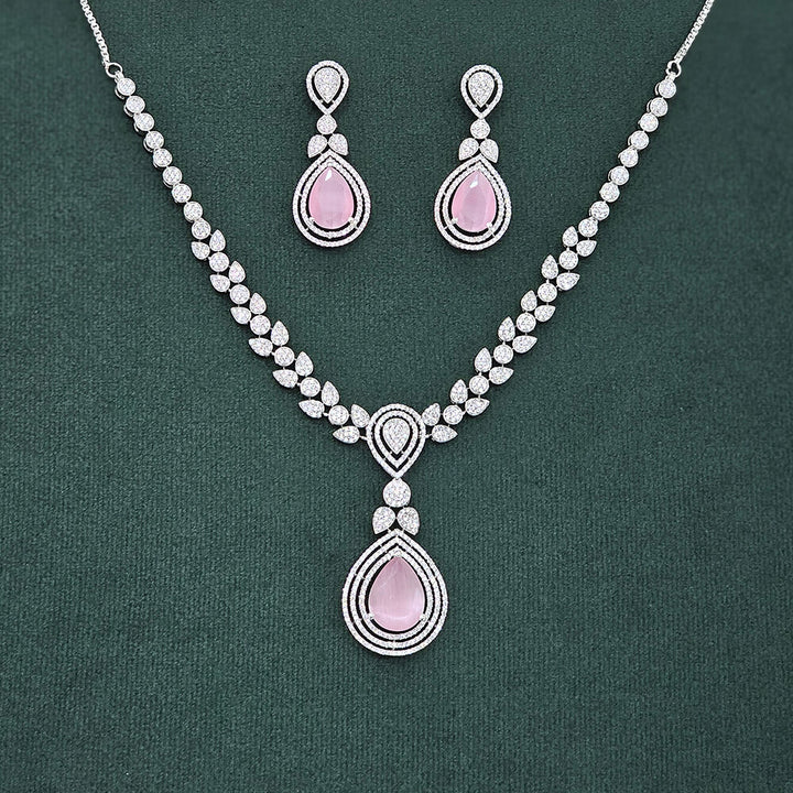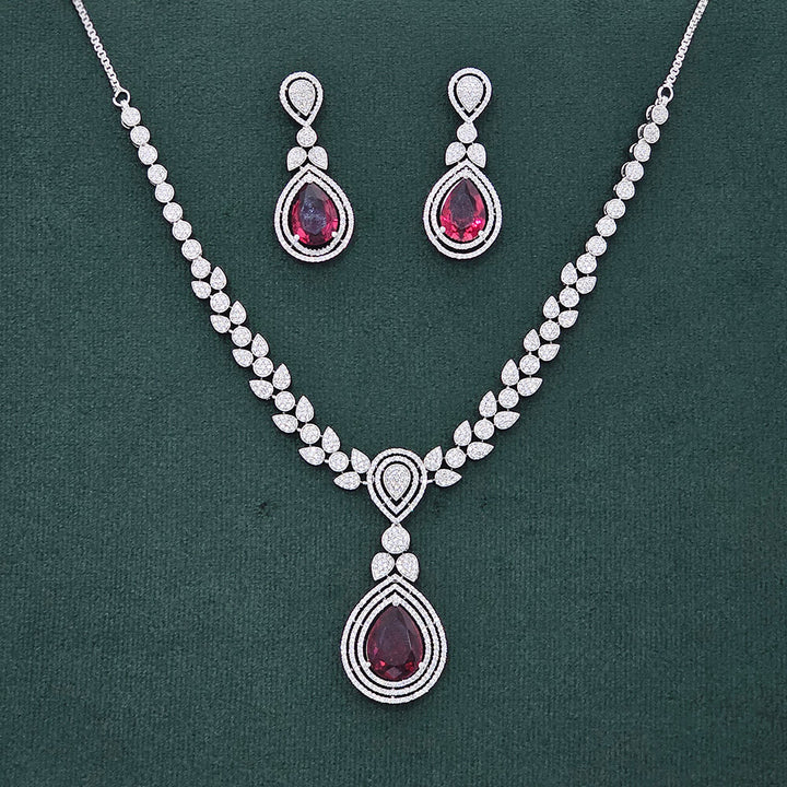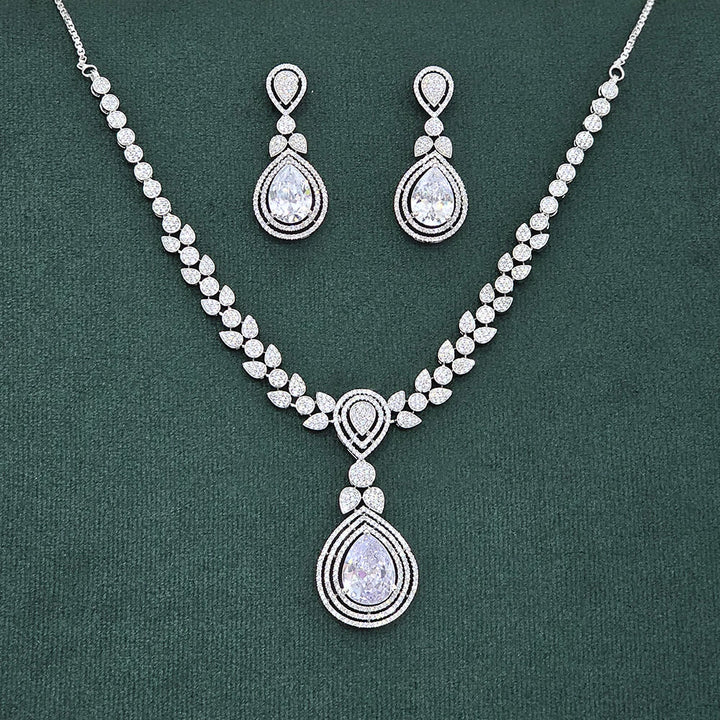 437539 Cubic Zirconia Classic Necklace Set With Rhodium Plating