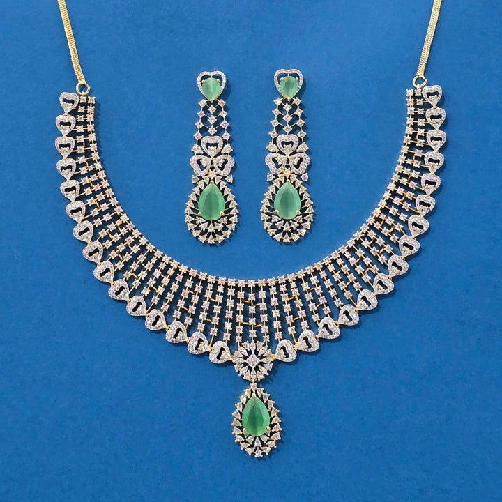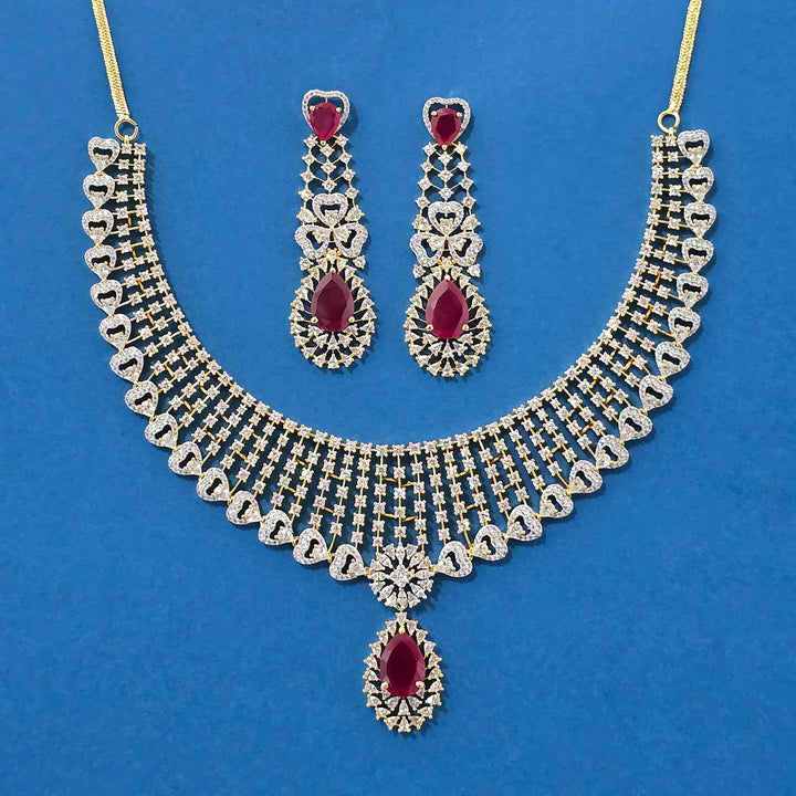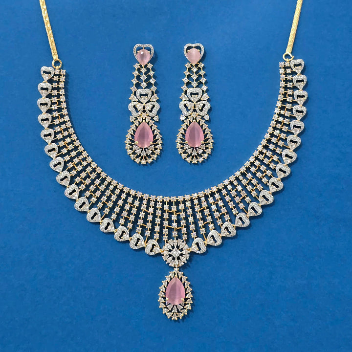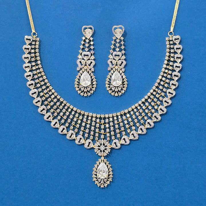 Weight: 86.0 Grams, Earring Height = 65 mm || Width = 20 mm,Regular Size And Adjustable,Bollywood Look,2 Tone Plating,American Diamond Necklace Set