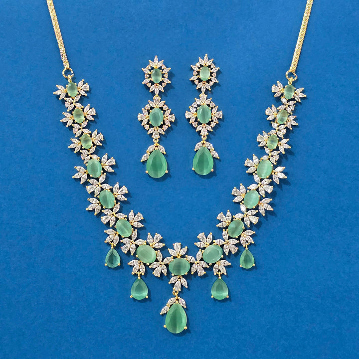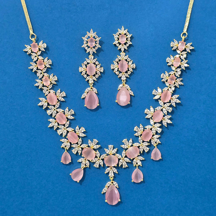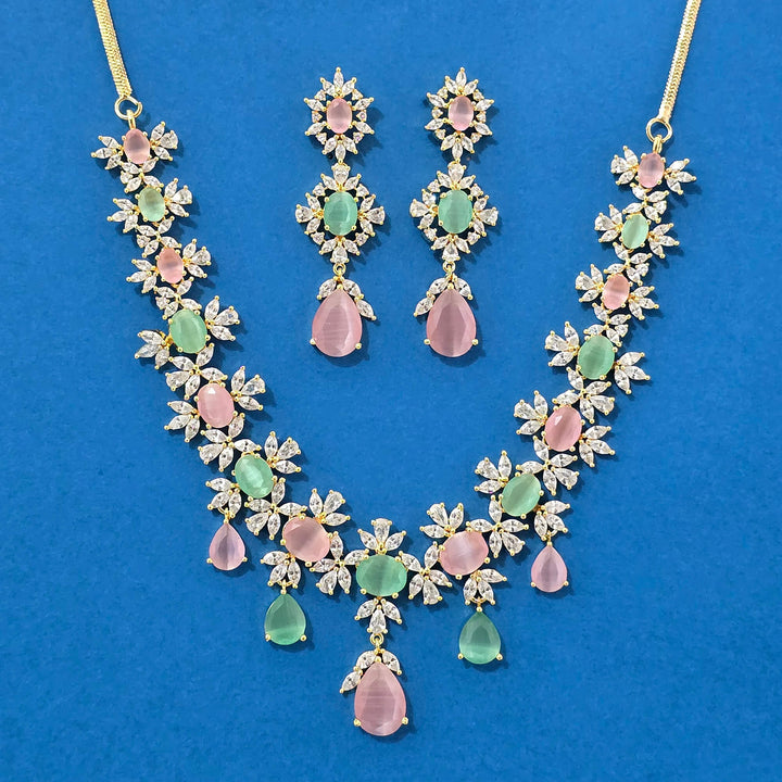 Weight: 65.0 Grams, Earring Height = 60 mm || Width = 18 mm,Regular Size And Adjustable,Handmade Design,2 Tone Plating,American Diamond Necklace Set
