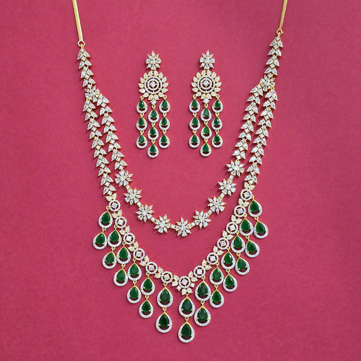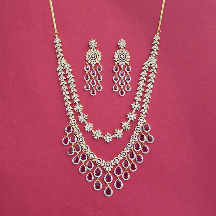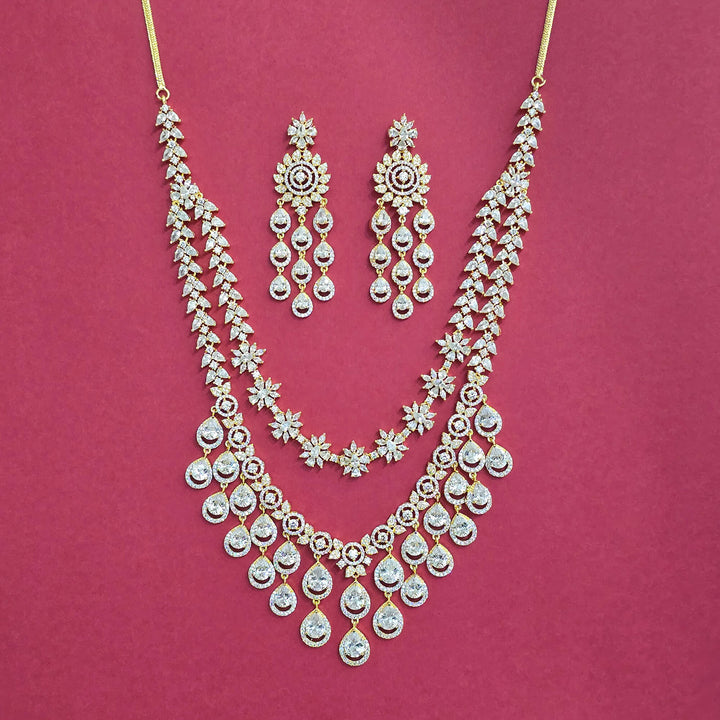 Weight: 130.0 Grams, Length = 18 Inch,Earring Height = 74 mm || Width = 23 mm,Long Necklace,2 Tone Plating,American Diamond Necklace Set