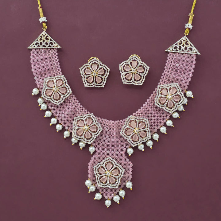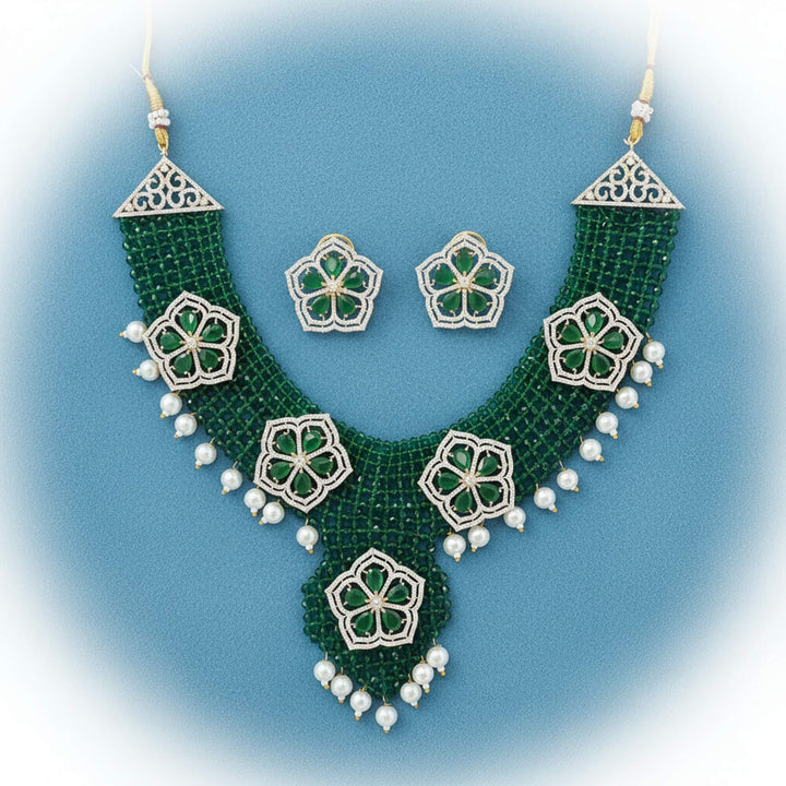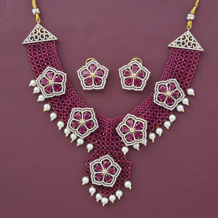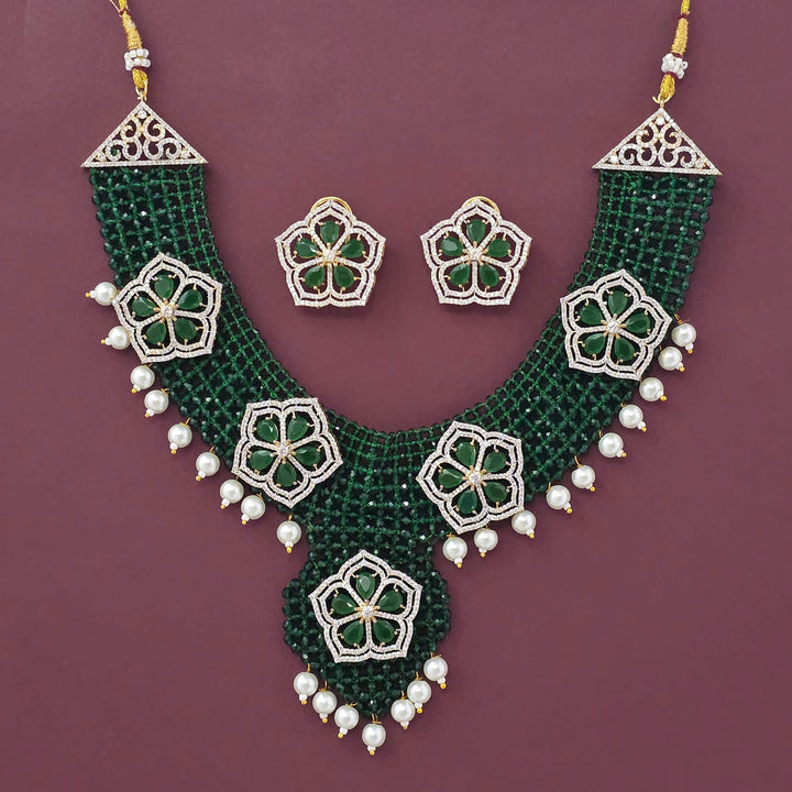 Weight: 87.0 Grams, Height = 30 mm || Width = 30 mm,,2 Tone Plating,American Diamond Necklace Set