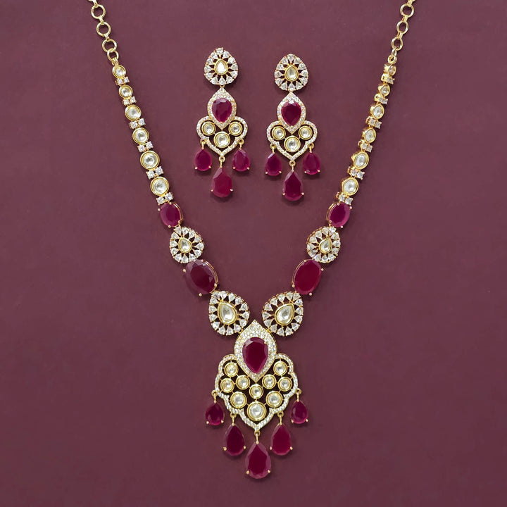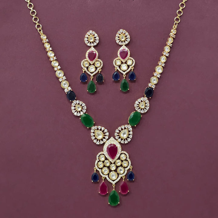 Weight: 56.0 Grams, Earring Height = 58 mm || Width = 22 mm,Regular Size And Adjustable,2 Tone Plating,American Diamond Necklace Set