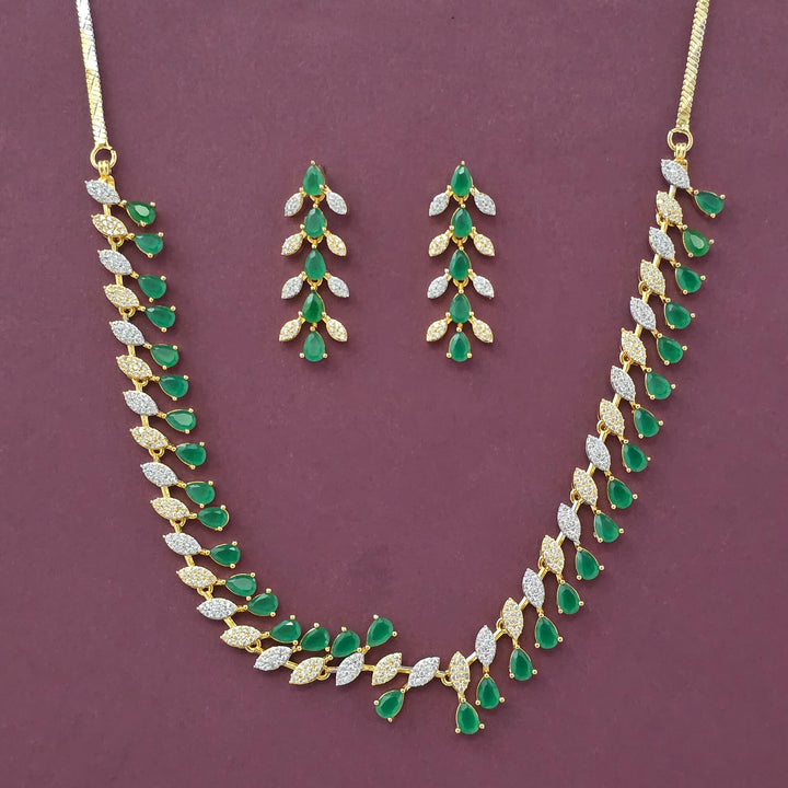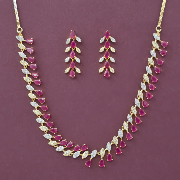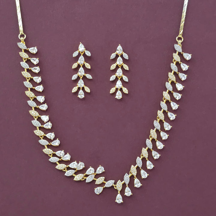 Weight: 35.0 Grams, Earring Height = 39 mm || Width = 14 mm,Regular Size And Adjustable,2 Tone Plating,American Diamond Necklace Set