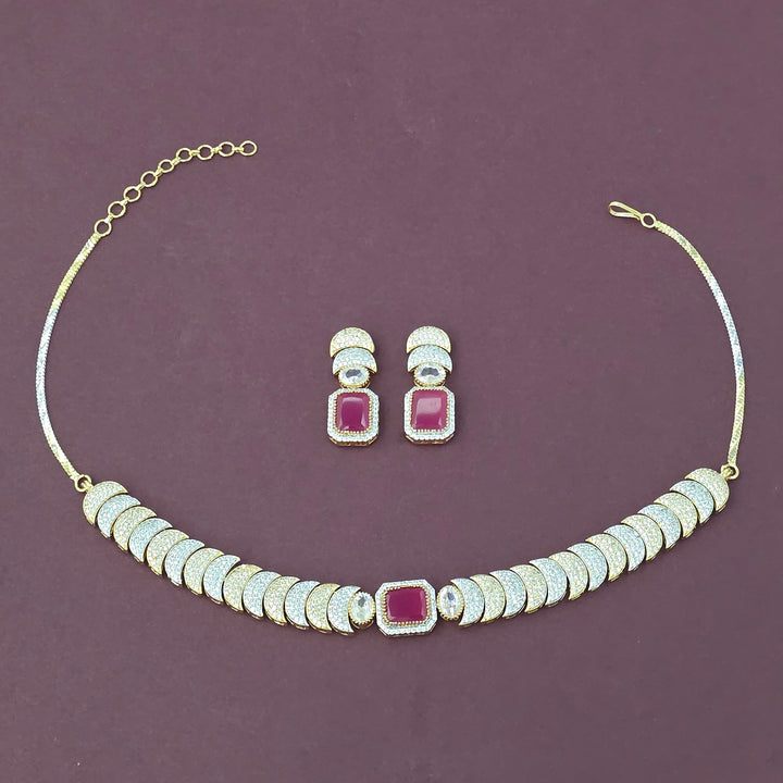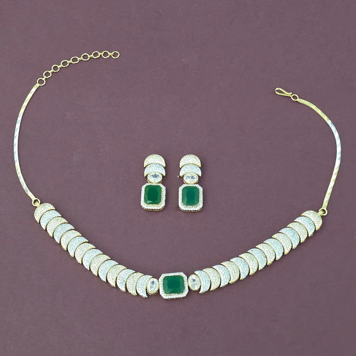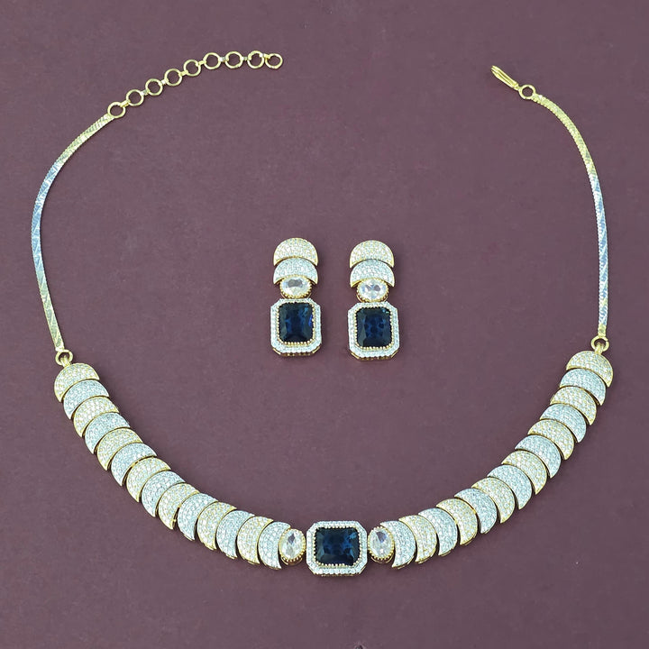 Weight: 57.0 Grams, Earring Height = 35 mm || Width = 15 mm,Regular Size And Adjustable,2 Tone Plating,American Diamond Necklace Set