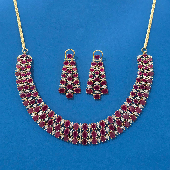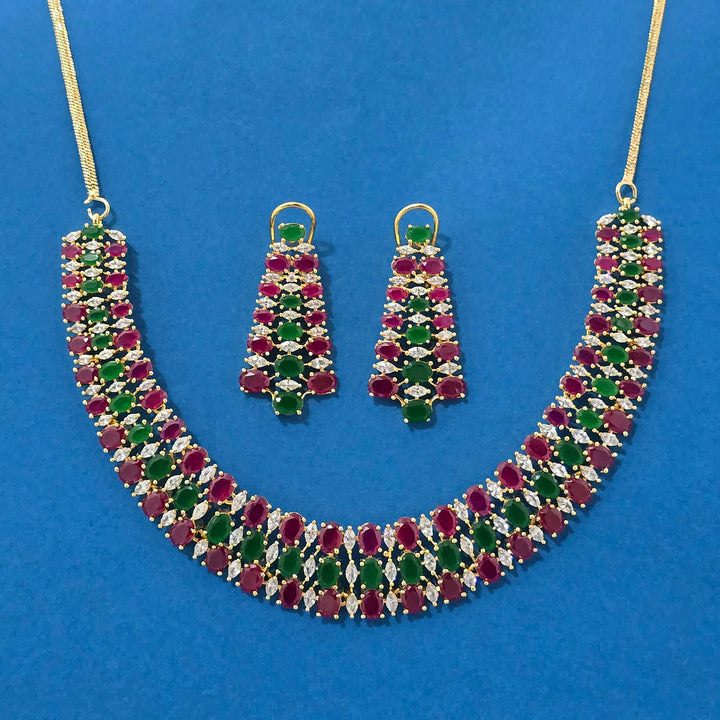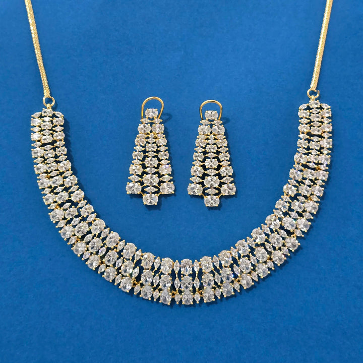 Weight: 74.0 Grams, Earring Height = 45 mm || Width = 23 mm,Regular Size And Adjustable,Bollywood Look,Gold Plating,American Diamond Necklace Set