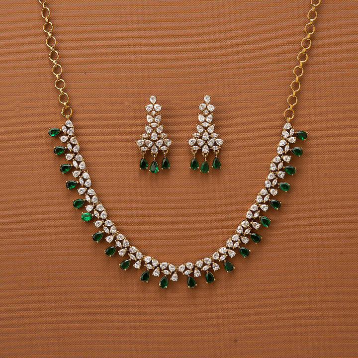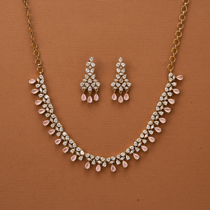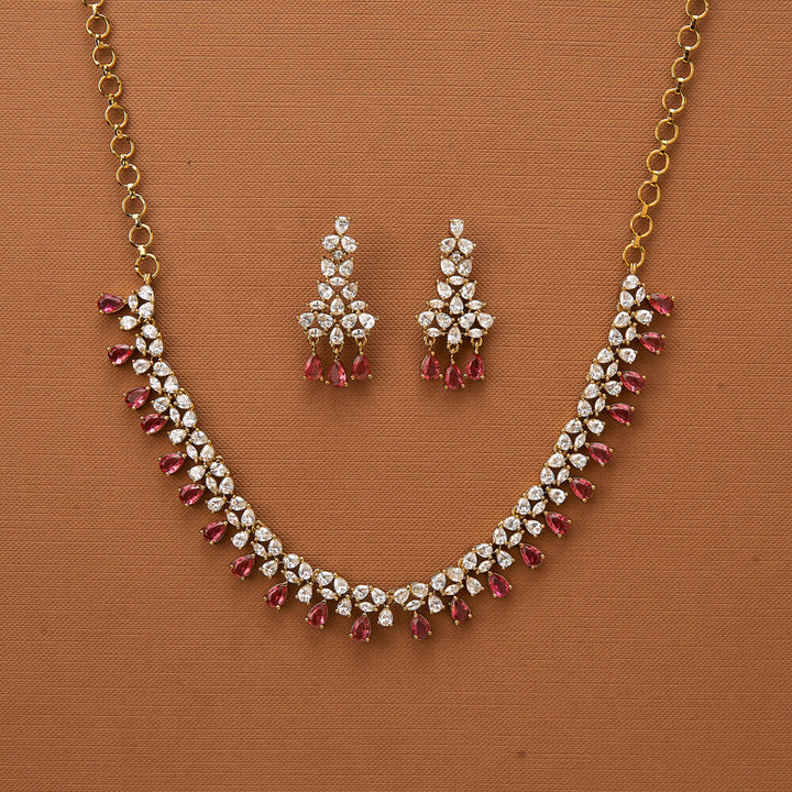 Weight: 44.0 Grams, Regular Size And Adjustable,Elegant Look,American Diamond Necklace Set