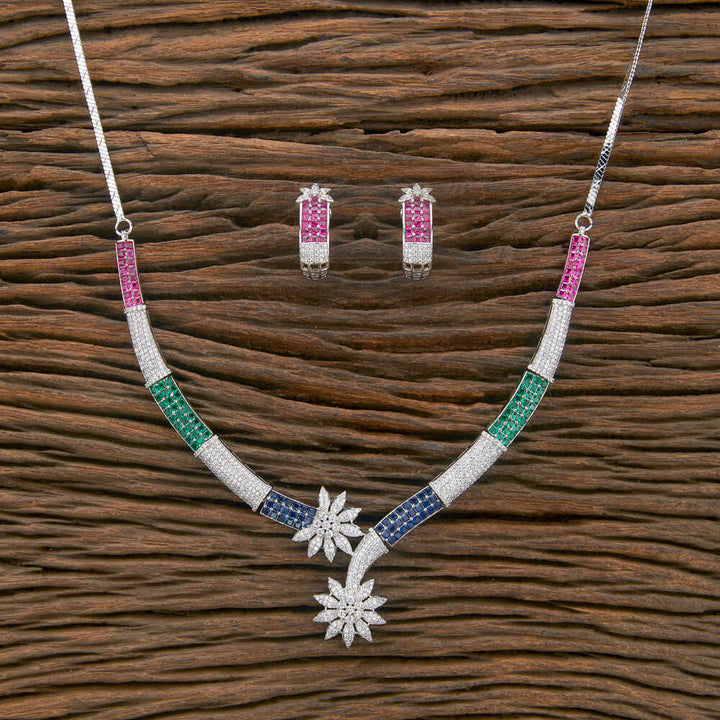 431163 Cubic Zirconia Classic Necklace With Rhodium Plating