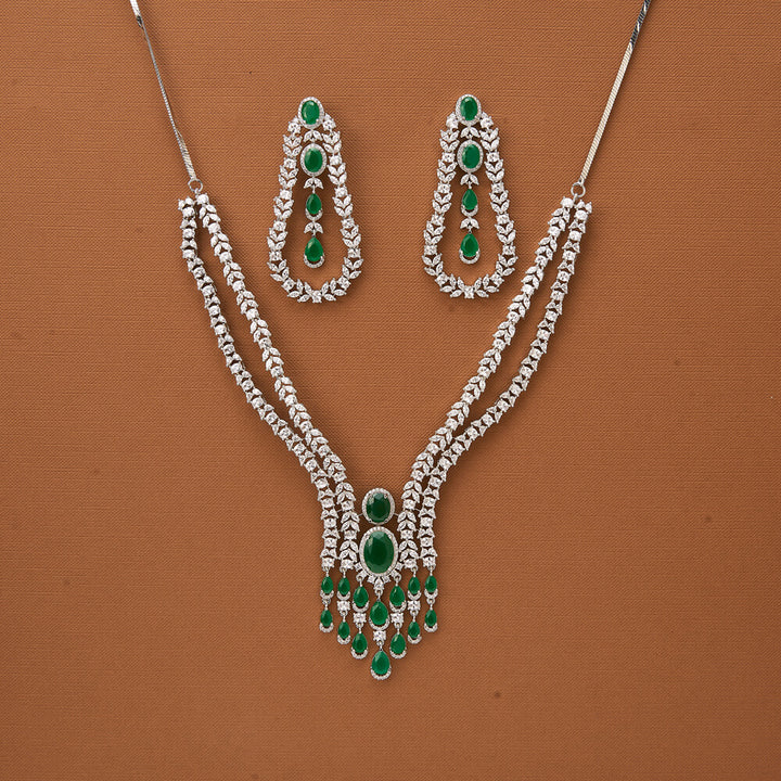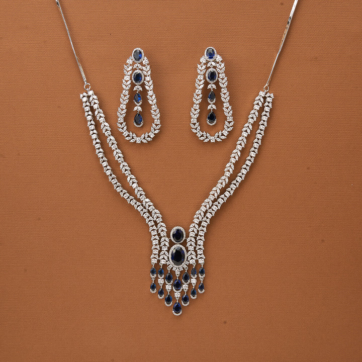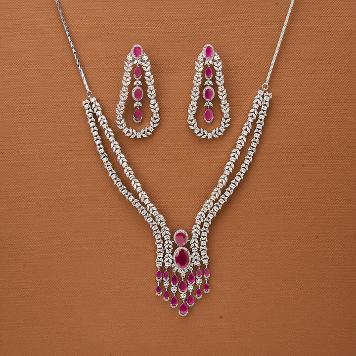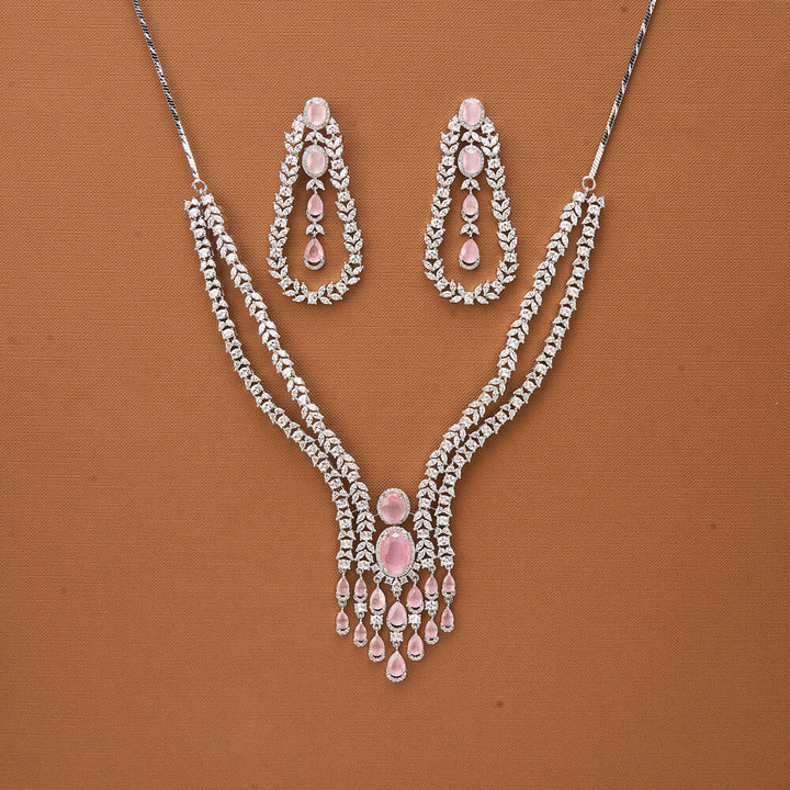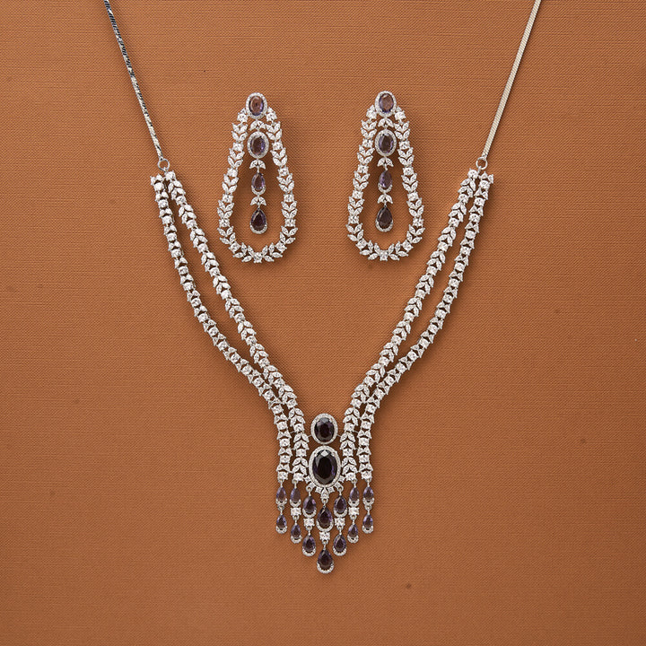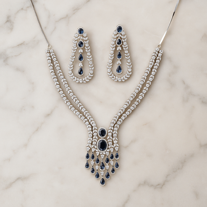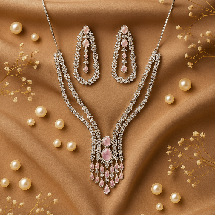 Weight: 90.0 Grams, Regular Size And Adjustable,Bollywood Look,American Diamond Necklace Set